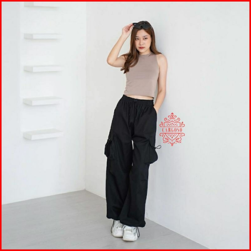 Celana Cargo Wanita Panjang Highwaist Loose Pants Wanita Korean Style Standar Jumbo Celana Gunung