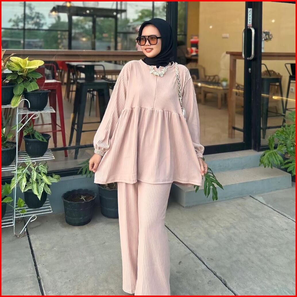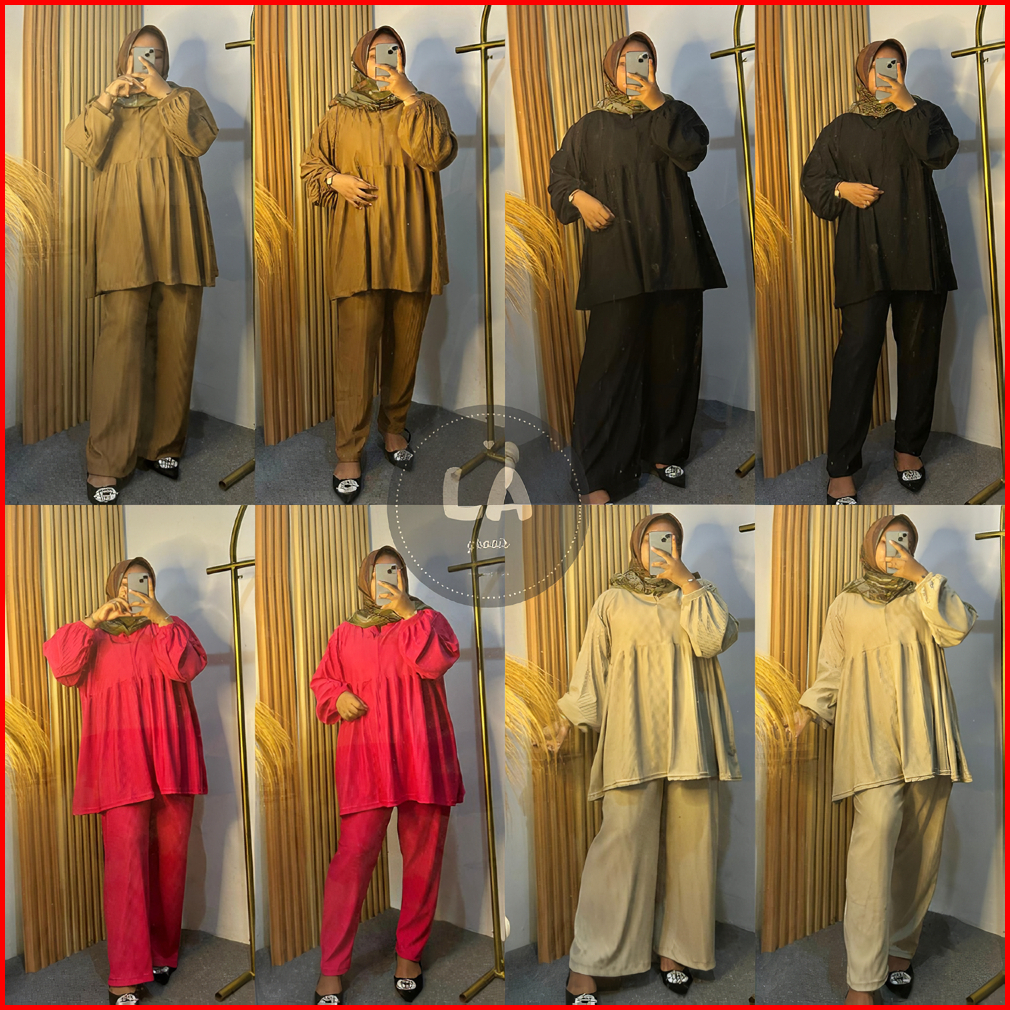 One Set Puffy Jumbo Setelan Bb 50-120kg Celana Busui Lengan Balon Bigsize Knit Import Setcel Knit