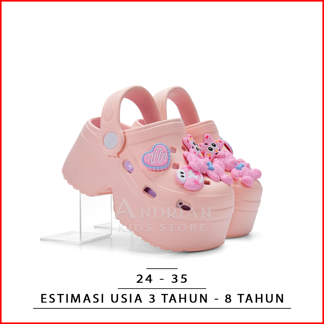Qloud Walkerz - Sandal Clogs Anak Perempuan Platform Tinggi Sandal Baim Anak Korean Style Super Empuk 3-9 Tahun Andrian