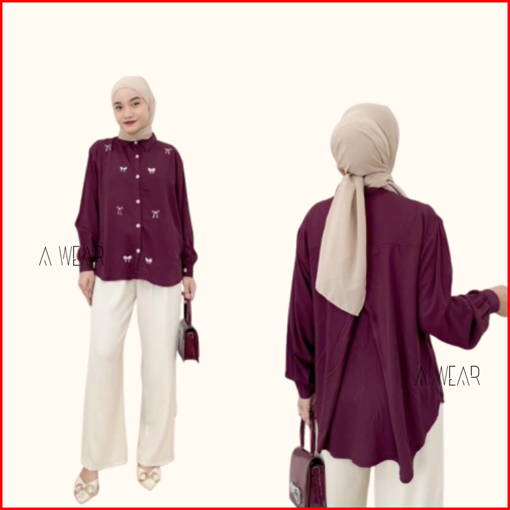 A Wear - Zize Kemeja Rayon Twill Bordir Pita Bordir Coquette