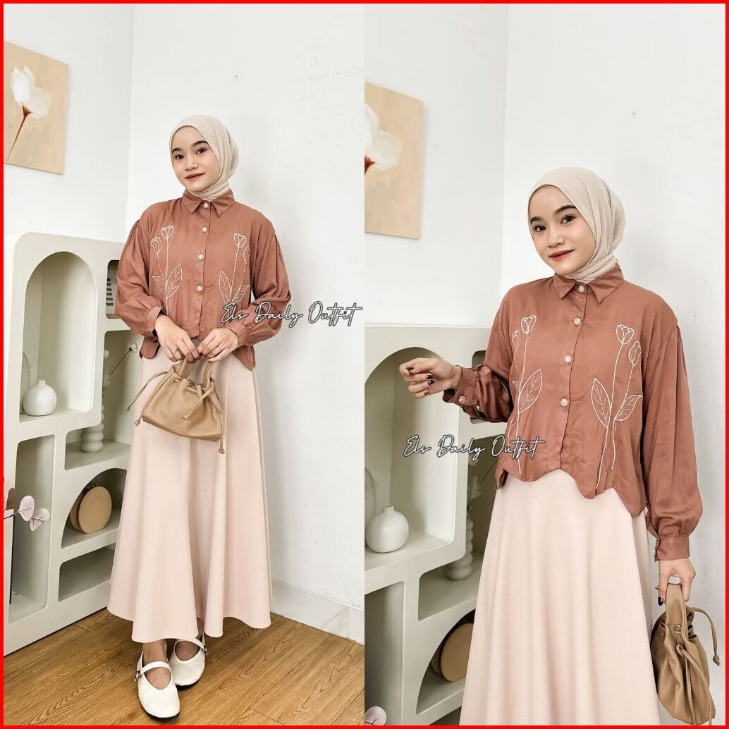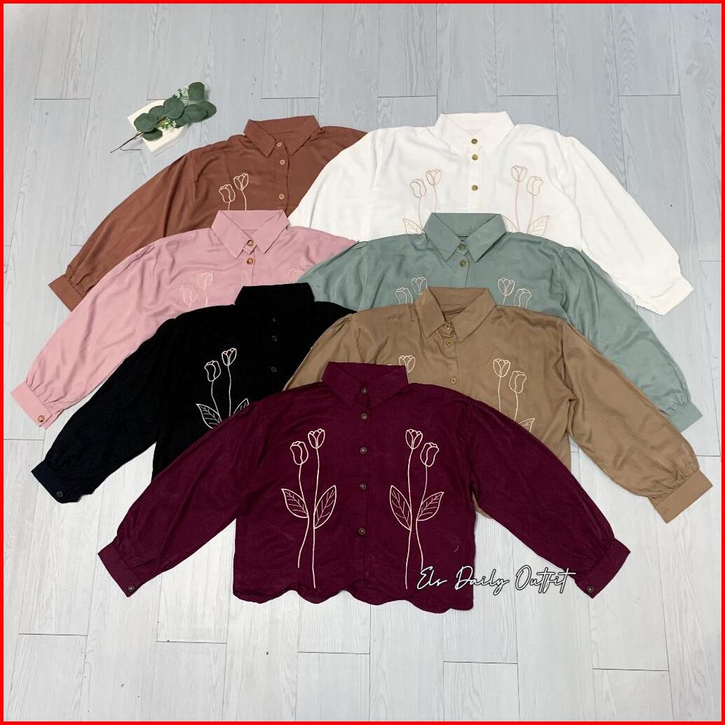 A Wear - Camary Flower Kemeja Rayon Twill Bordir Bunga Crop Lengan Panjang
