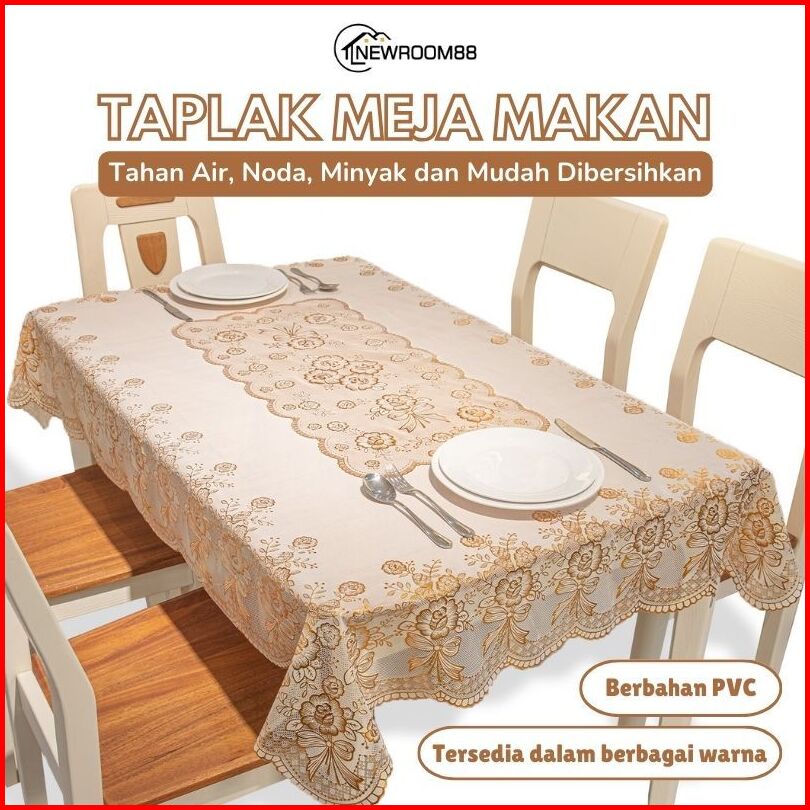 Newroom - Taplak Meja Makan Bahan Pvc Tebal Premium Motif Bunga Ukuran 116x167cm - D40-a C