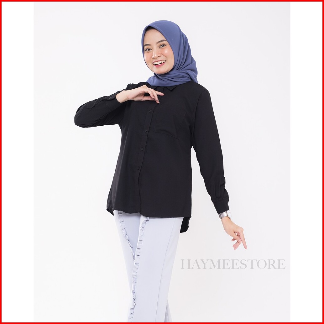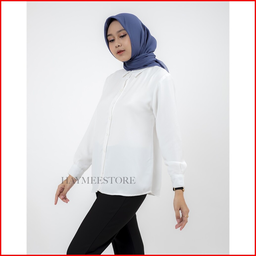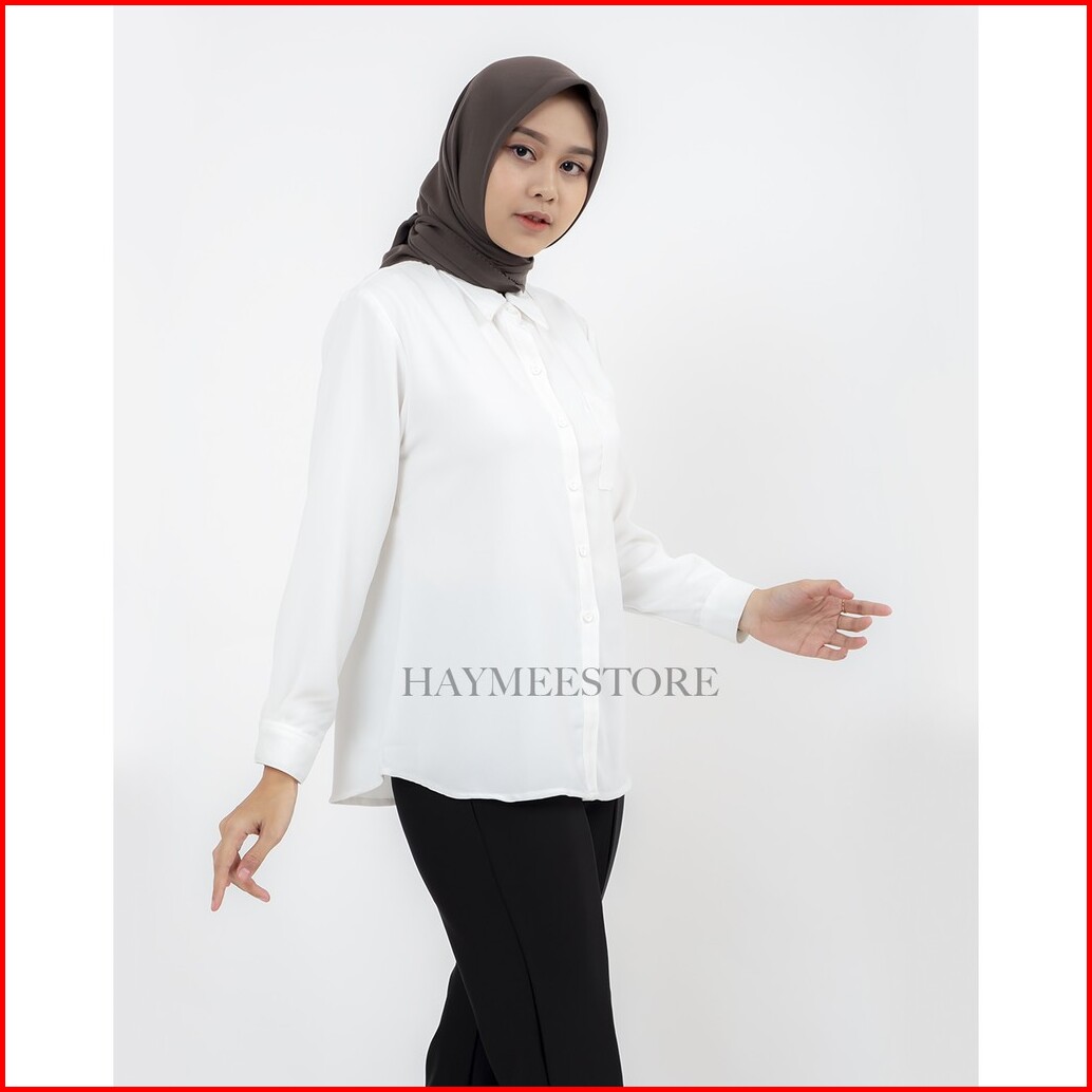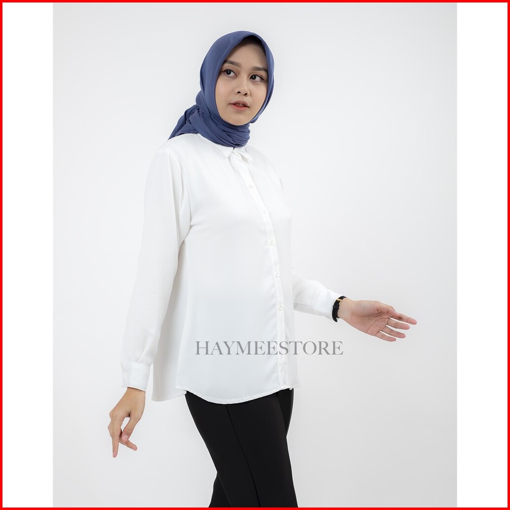 Haymeeidn - Kemeja Putih Polos Wanita Baju Kantor Cewek Formal Atasan Kerja Cewe Bahan Moscrape