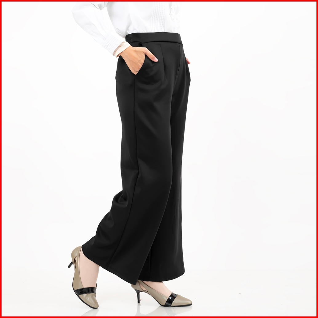 Haymeeidn - Celana Kulot Jumbo Bawahan Highwaist Wanita Bawahan Kulot Premium Bahan Scuba -black