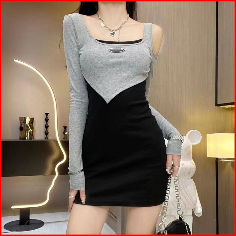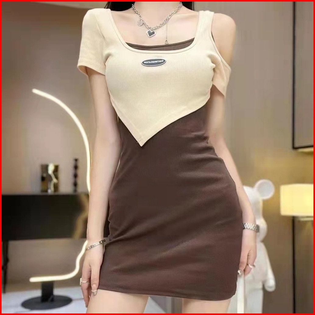 Cohan Dr906 Dr905 Dress Mini Bodycon Sexy Lengan Panjang Dan Pendek Korean Style Elegan Brown Black S M L Xl 2xl