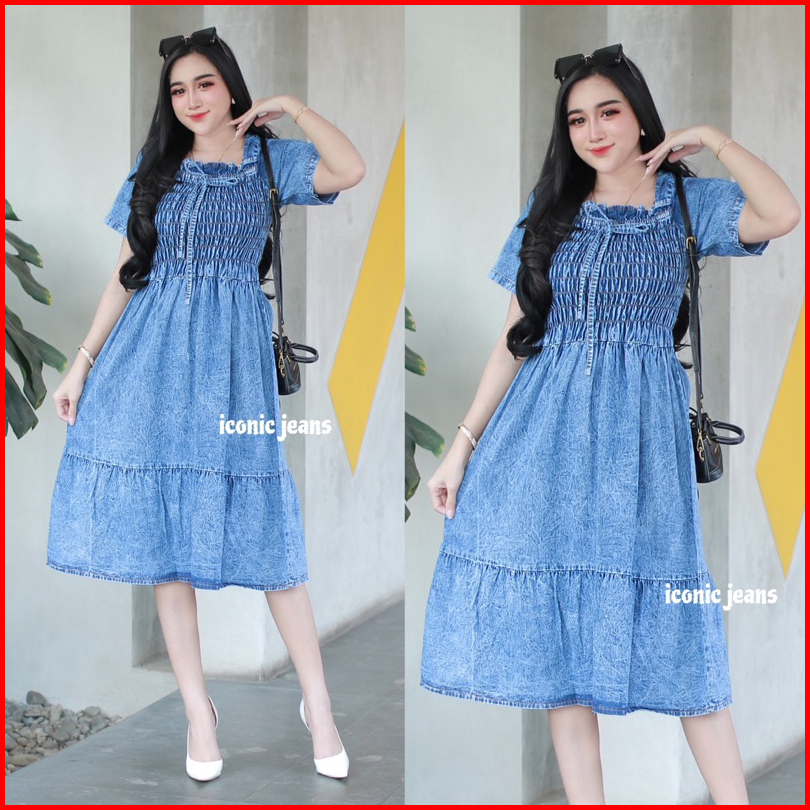 Iconicjeans - Denim Dress Terbaru Daster Jeans Kerut Cantik Busui