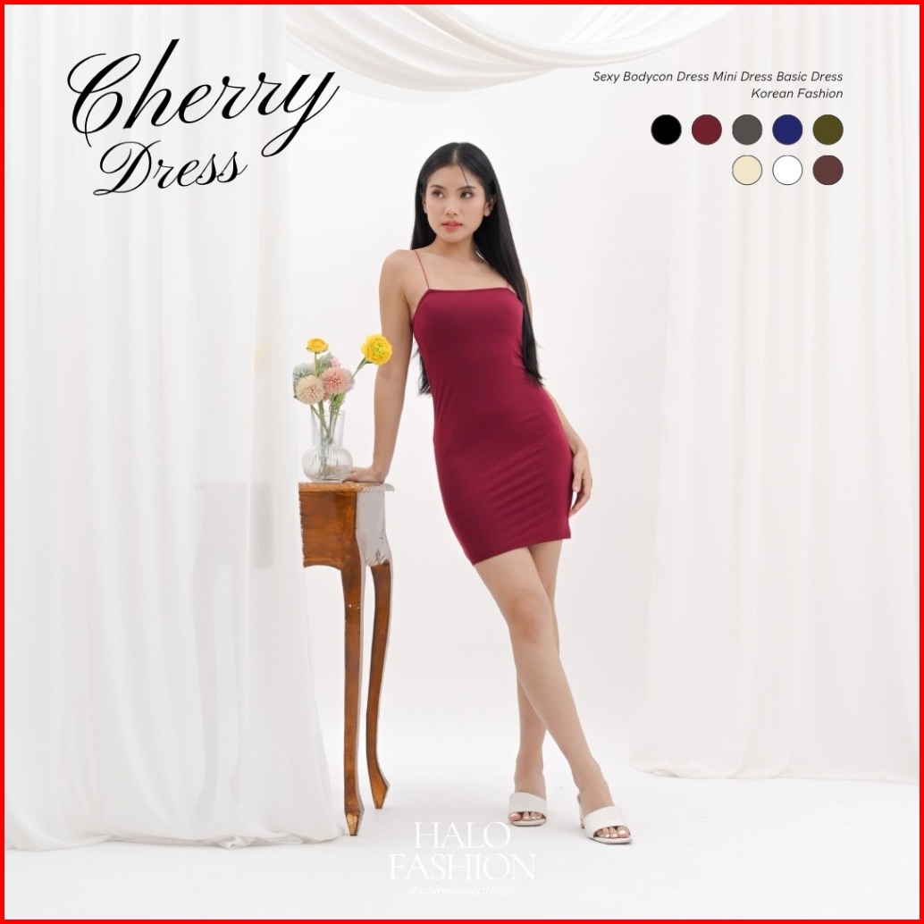 Halofashion Cherry Sexy Bodycon Dress Mini Dress Basic Dress Korean Fashion