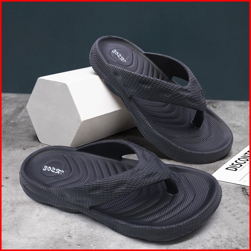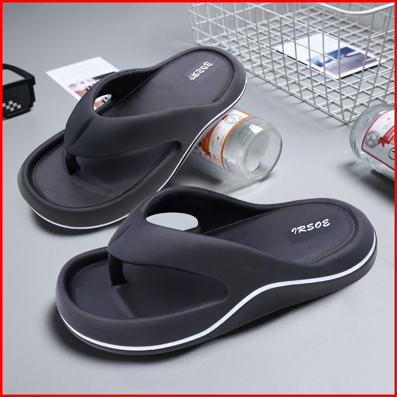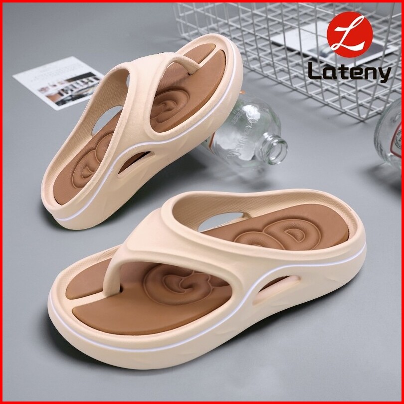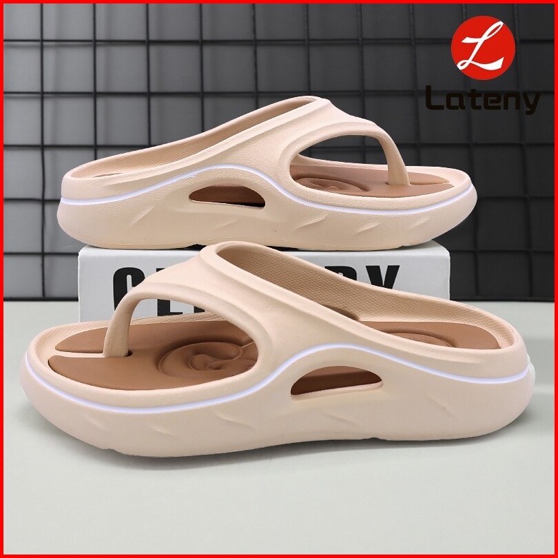 Lateny Sandal Pria Gaya Korea Sol Tebal Hitam Anti Licin Sepatu Pantai Luar Ruangan Kasual Serbaguna