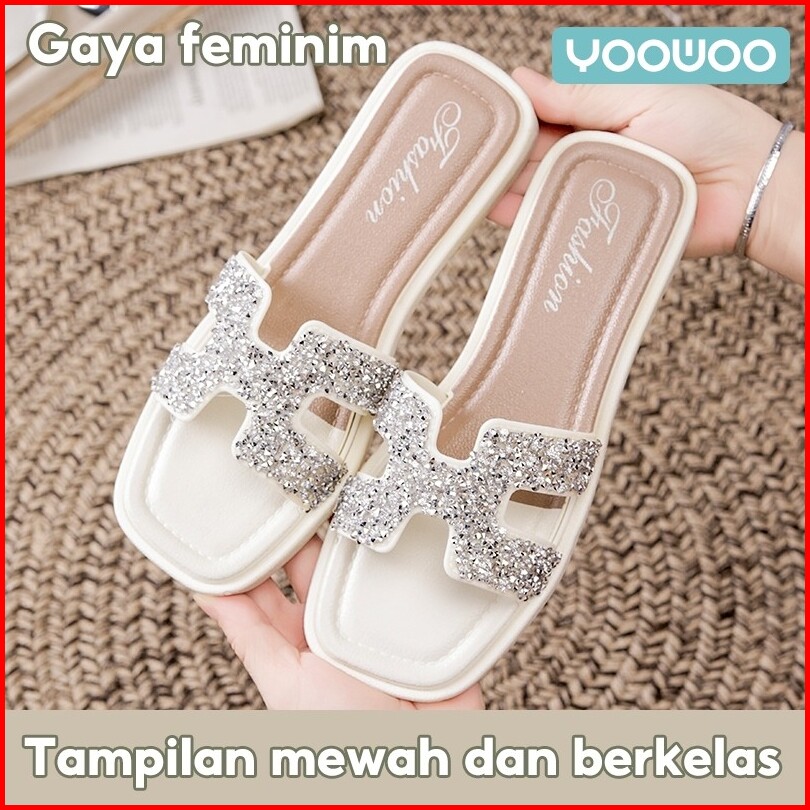 Yoowoo Sandal Bling Wanita Sandal Teplek Wanita Sandal Slop Sandal Flat Sandal Wanita Empuk Model Teplek