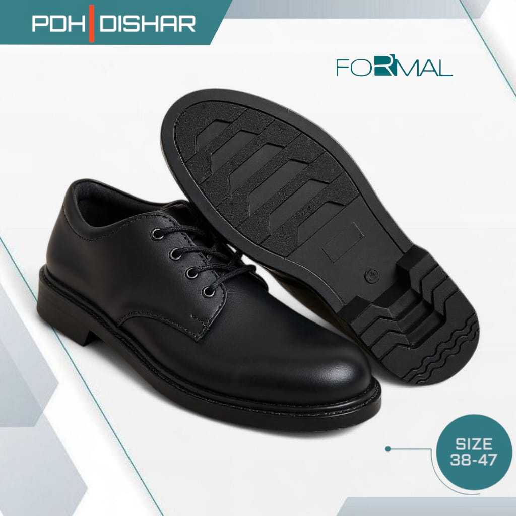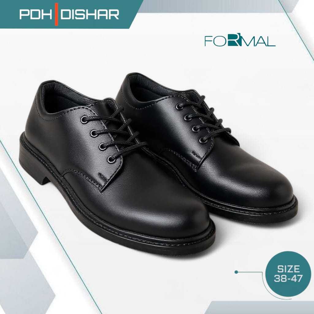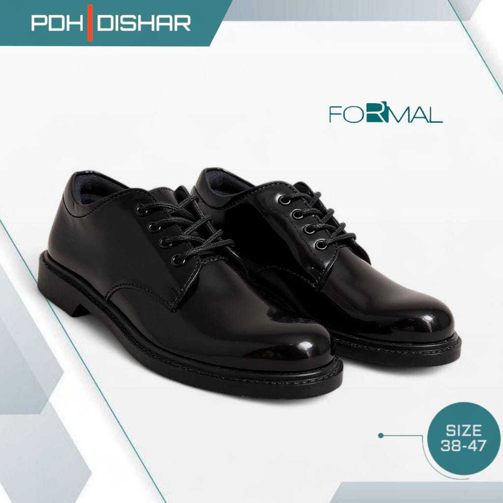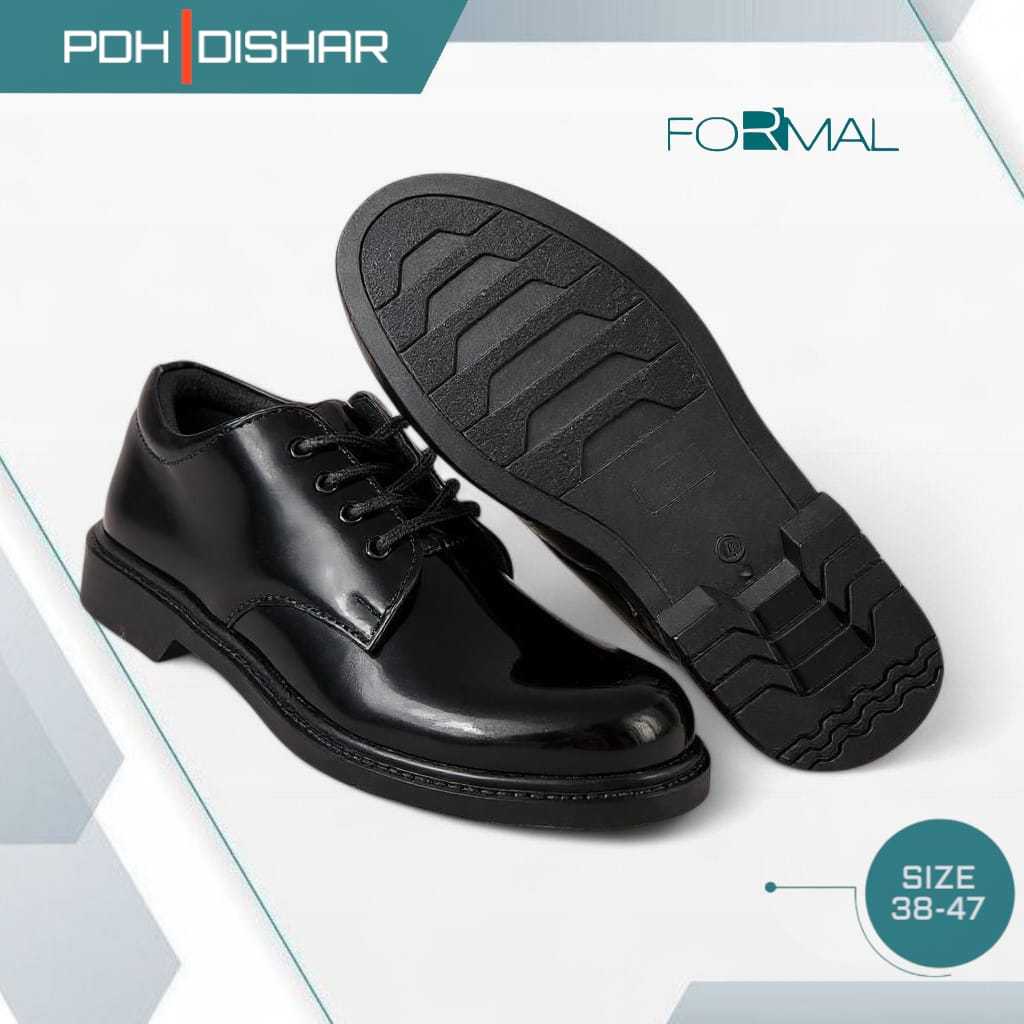 Sepatu Pdh Tali Putar Dinas Harian Kerja Pria Tni Polisi Satpam Hitam Elegant