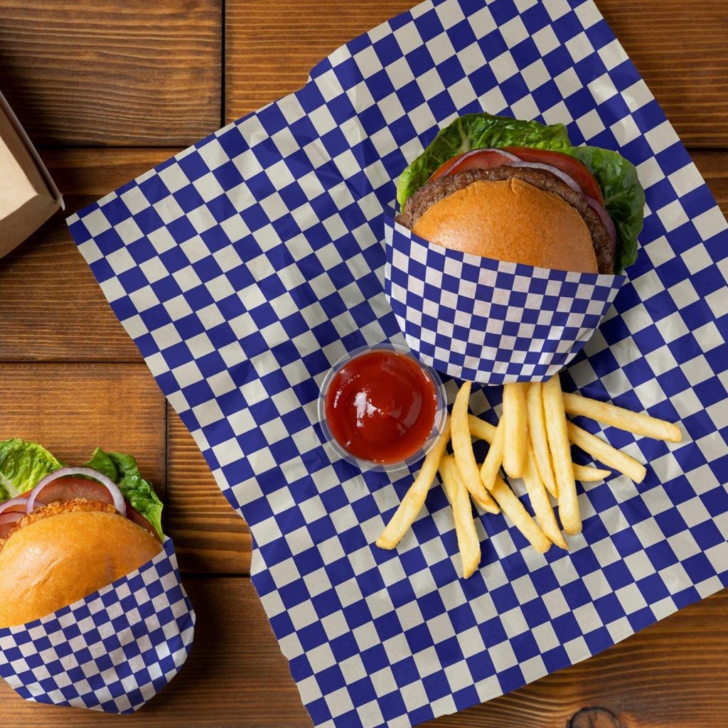100pcs Kertas Burger Food Wrapper Kertas Nasi Motif Grid 30cmx30cm