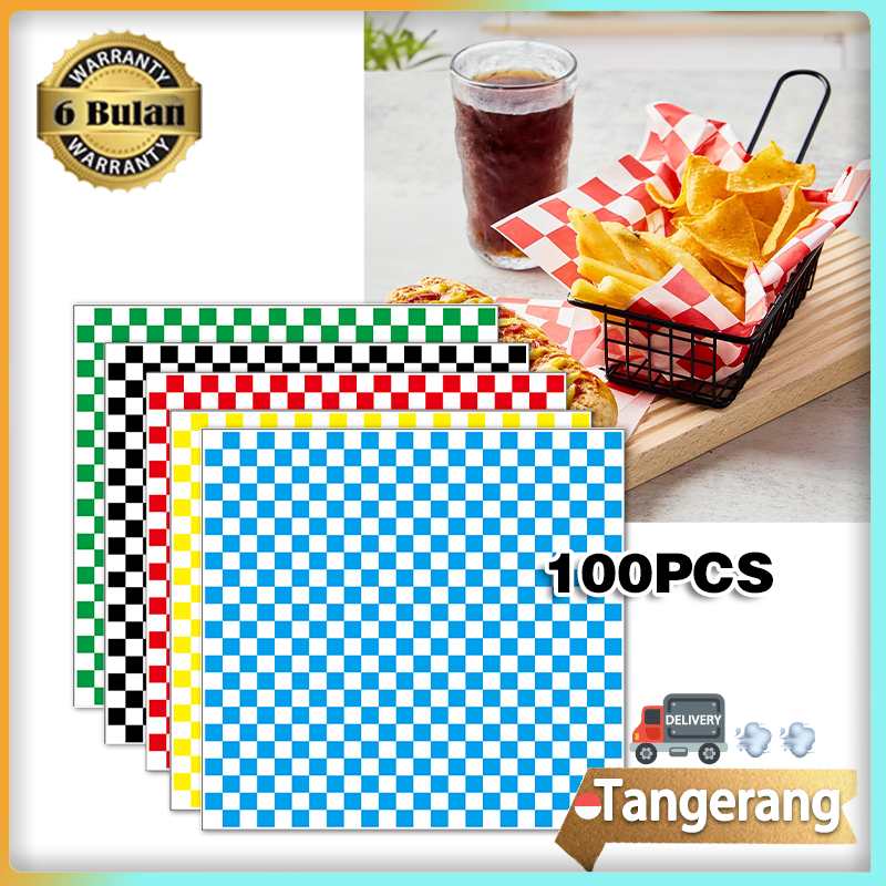 100pcs Kertas Burger 30cmx30cm Kertas Nasi Motif Grid Food Wrapper Foodgrade Greaseproof