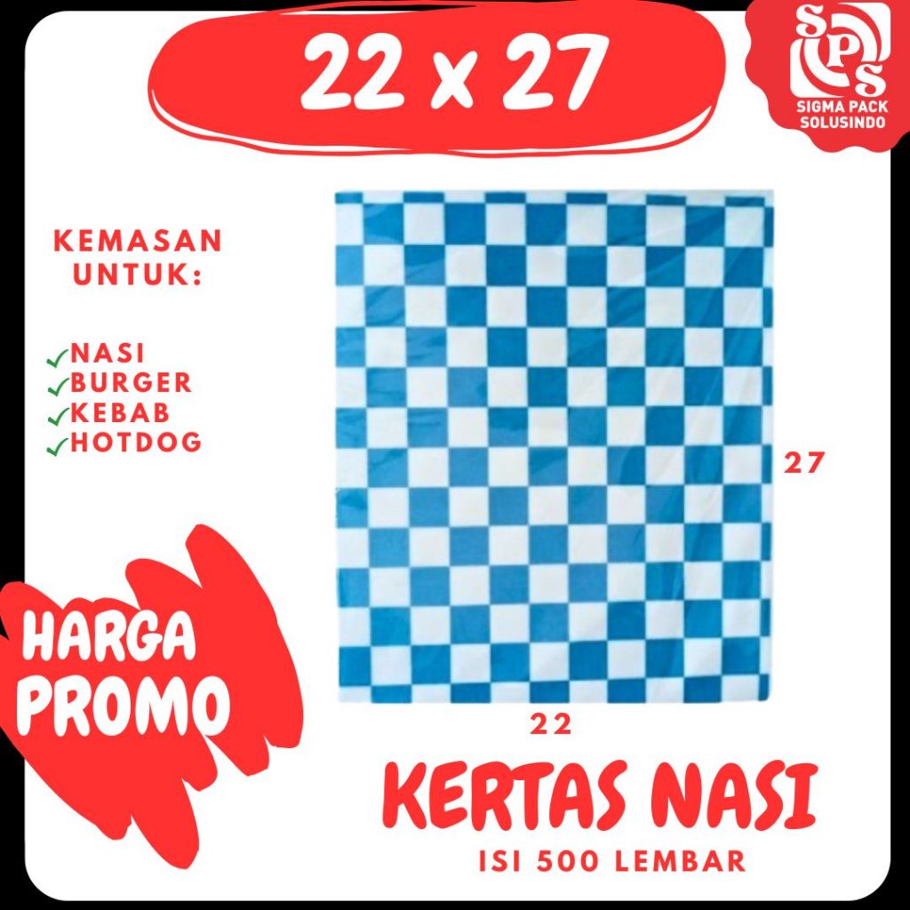 kertas nasi Isi 500 27x22 motif kertas bungkus nasi printing Foodgrade Paper Paper Rice | Zigma shop
