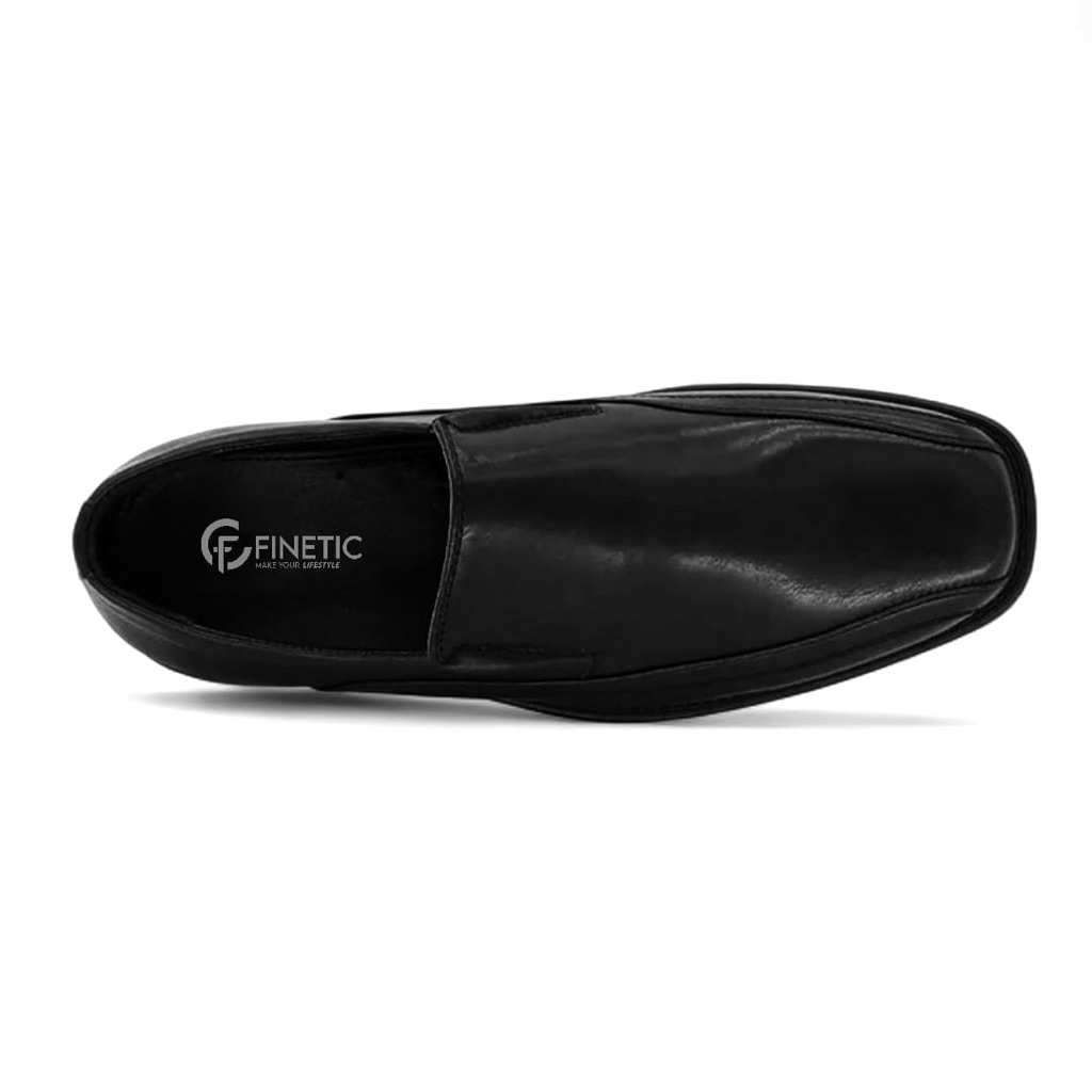 Finetic Sepatu Pantofel Oxford Pria Kulit Hitam Polos Model Slop Kantor Kerja P-01