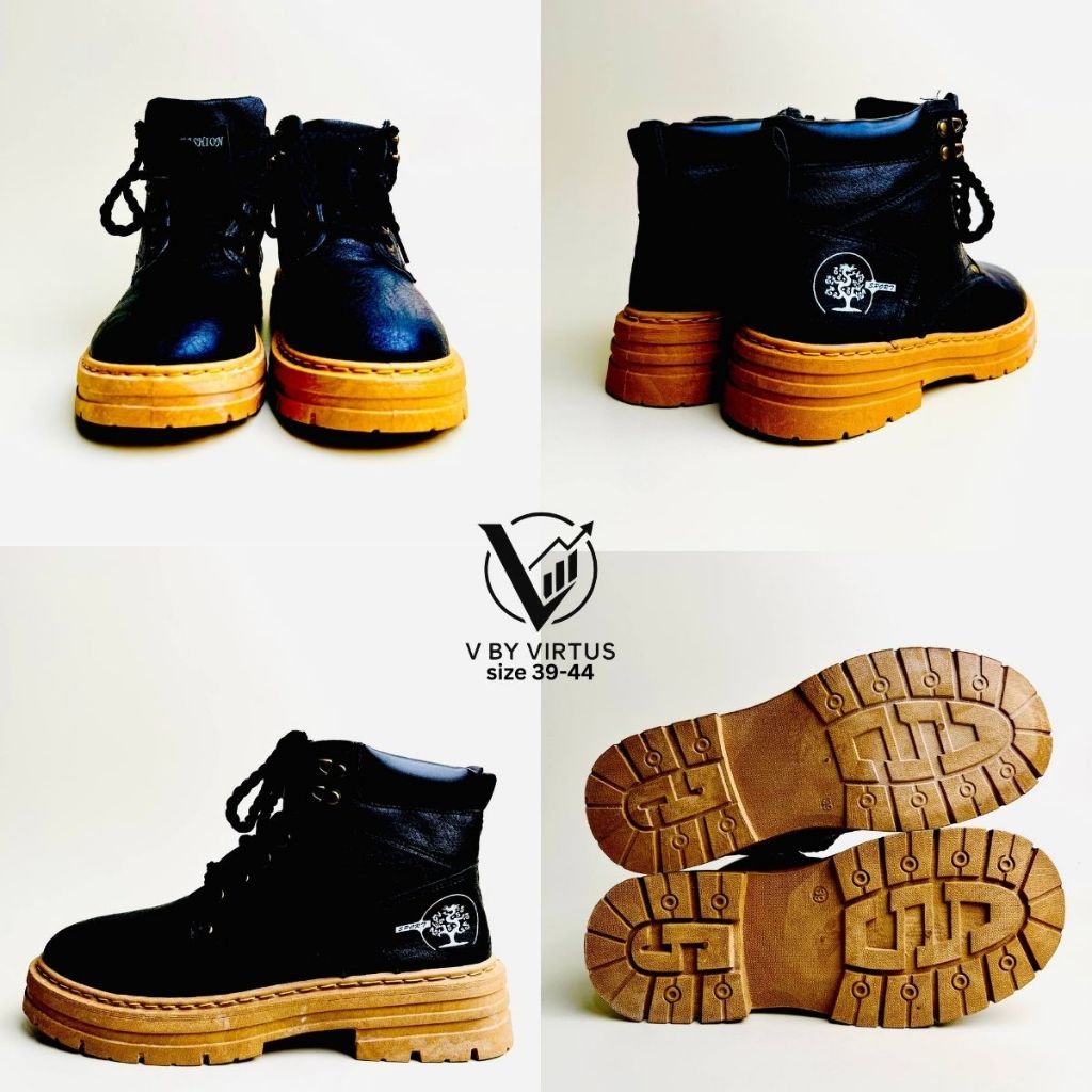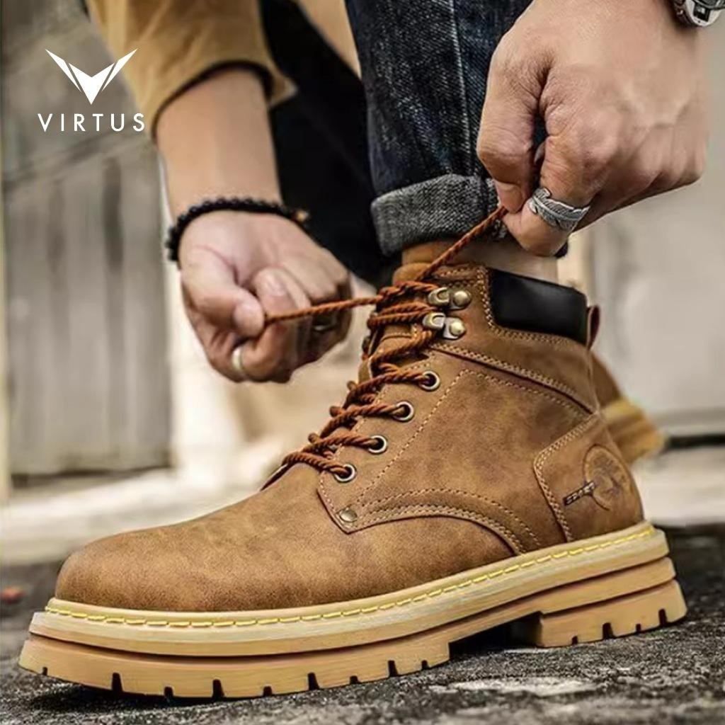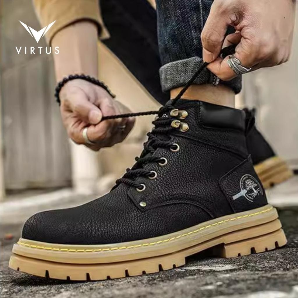 V by Virtus 39 - 44 ARTHUR Sepatu Sneakers Boots Shoes Hiking Gunung Pria Kulit Casual Formal Kerja Tali Coklat Hitam Sh