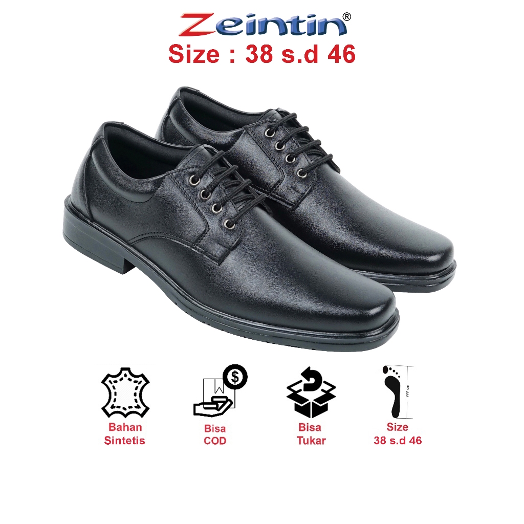 Zeintin - Sepatu Pantofel Pria Zeintin BJ 2205 Hitam Bahan Kulit Sintetis Sepatu Formal Kasual BJ