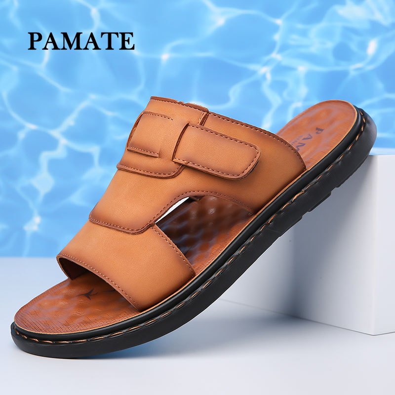 Sandal Pria Sendal Selop Slip On Kulit Hitam PAMATE - Casual Anti Selip