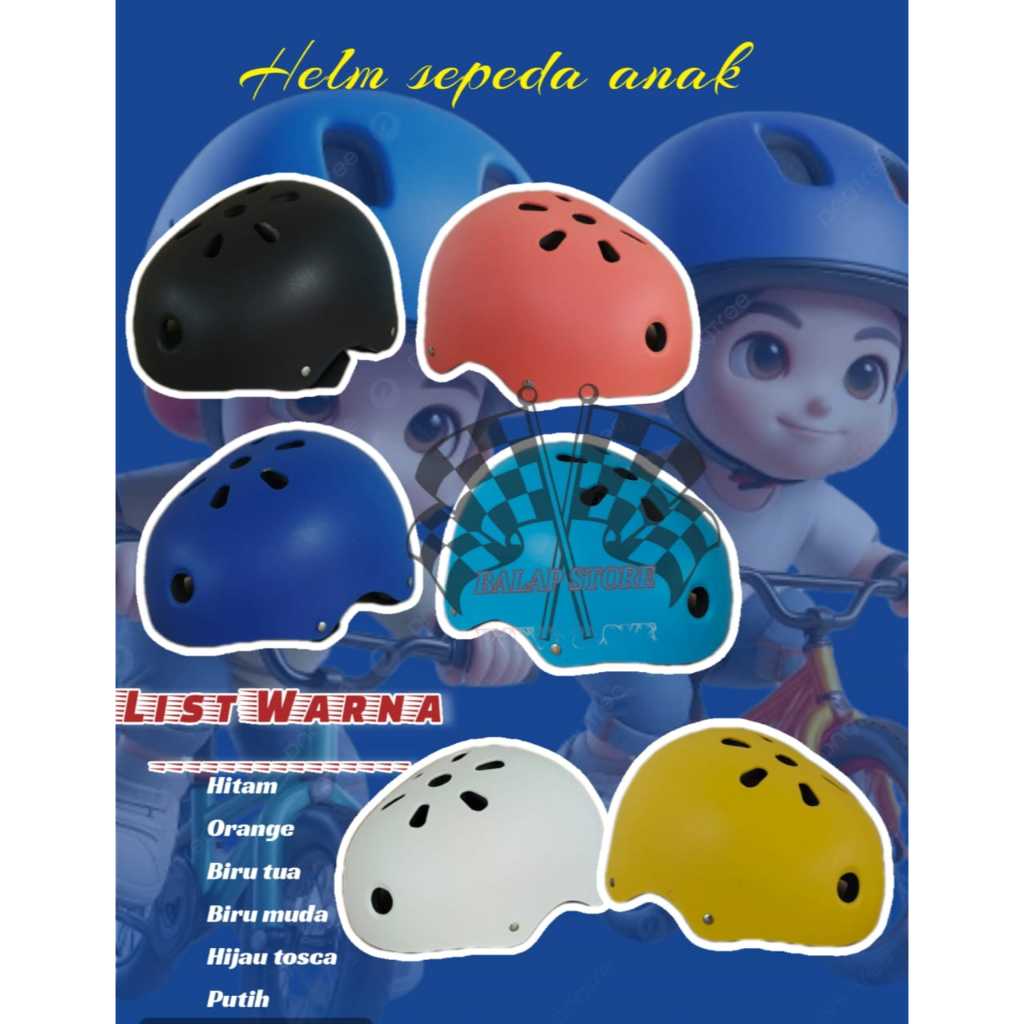Helm sepeda anak, helm skateboard, skuter, outbound, arum jeram, sepatu roda