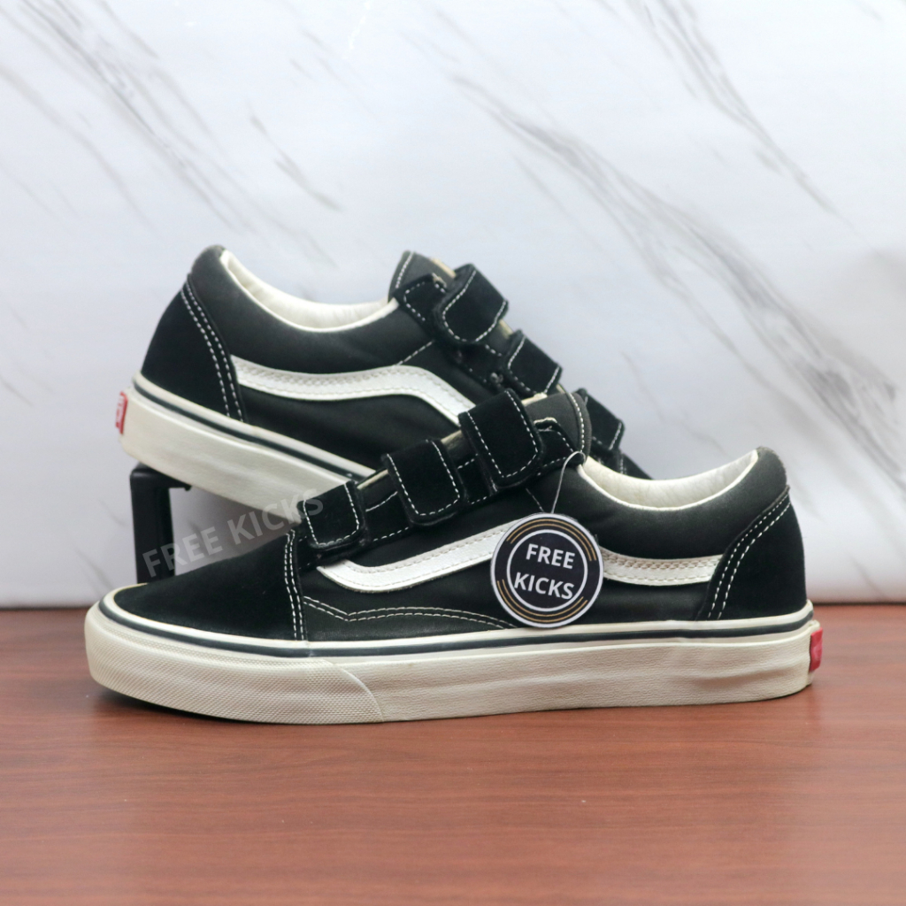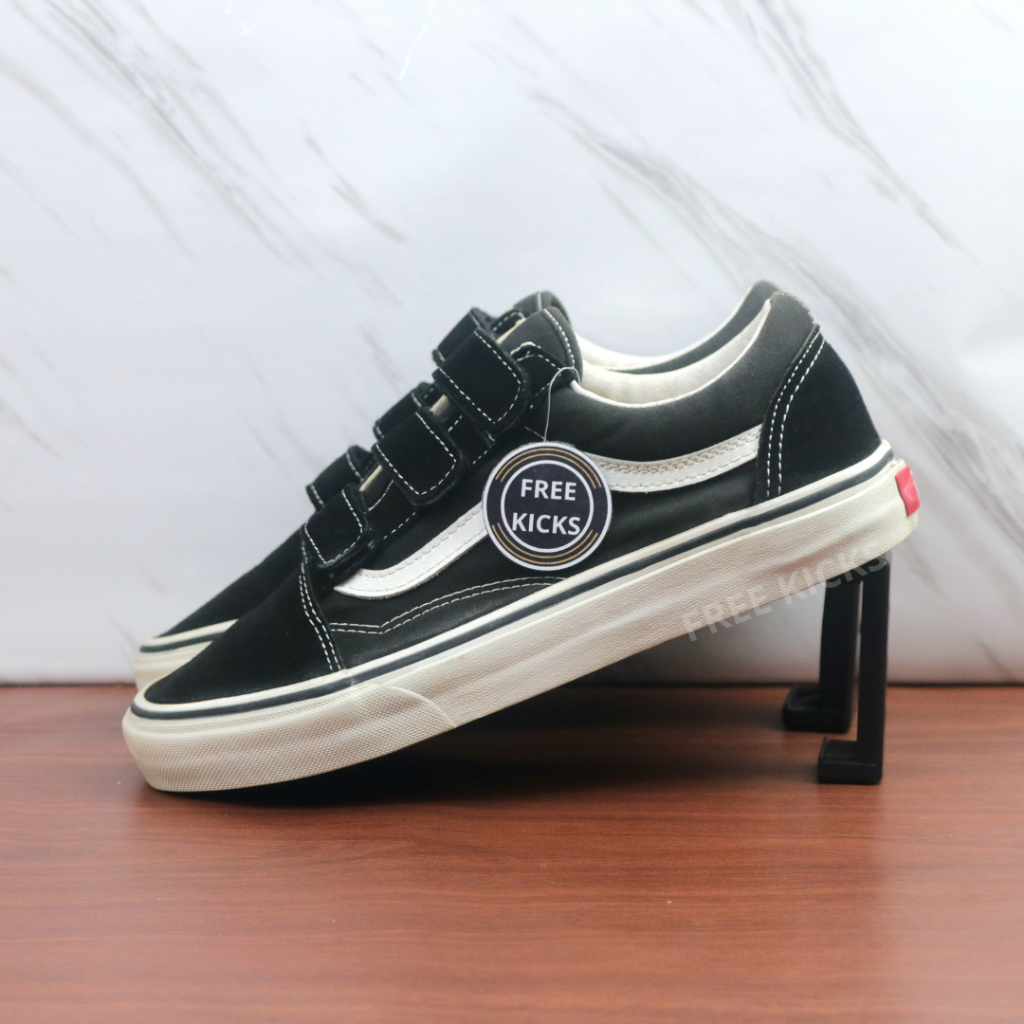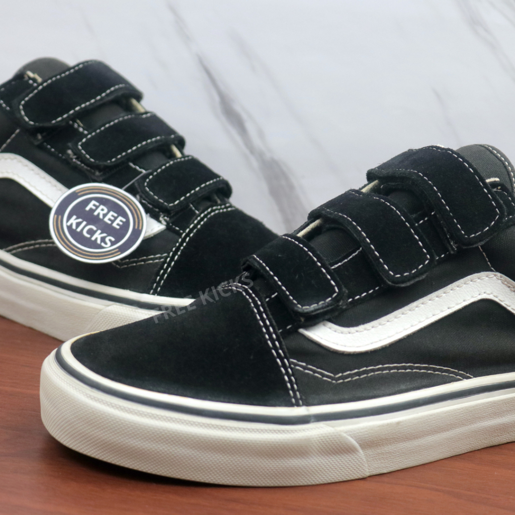 Sepatu Old Skool Velcro Black White Sneakers Kasual Oldskool Hitam Putih