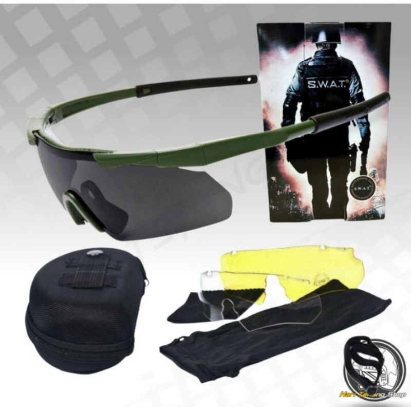 kaca mata swat tactical pengendara motor outdoor kaca mata pria fulset 3 lensa