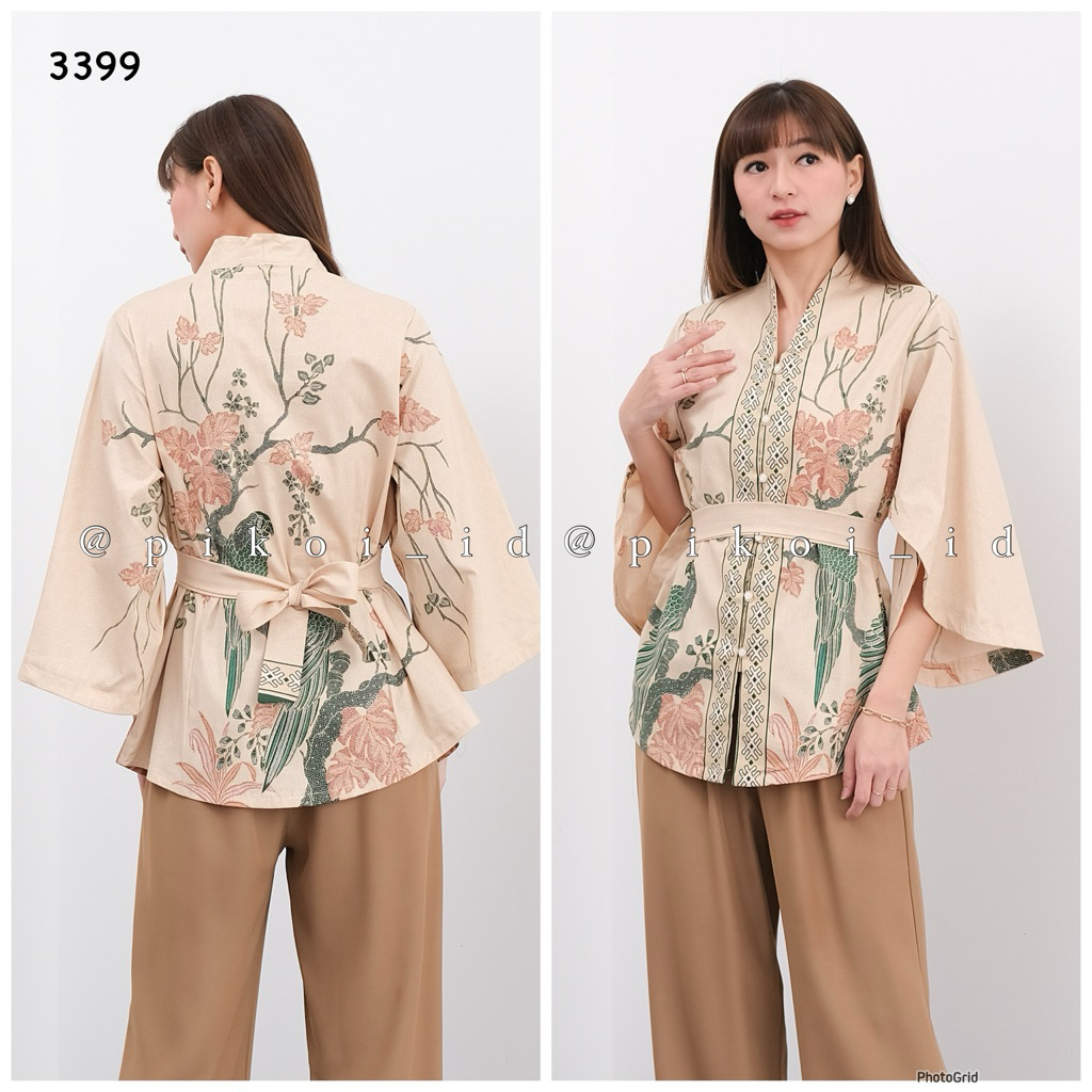 Atasan batik modern lengan panjang kimono full kancing / baju batik wanita busui / atasan ikat 3399