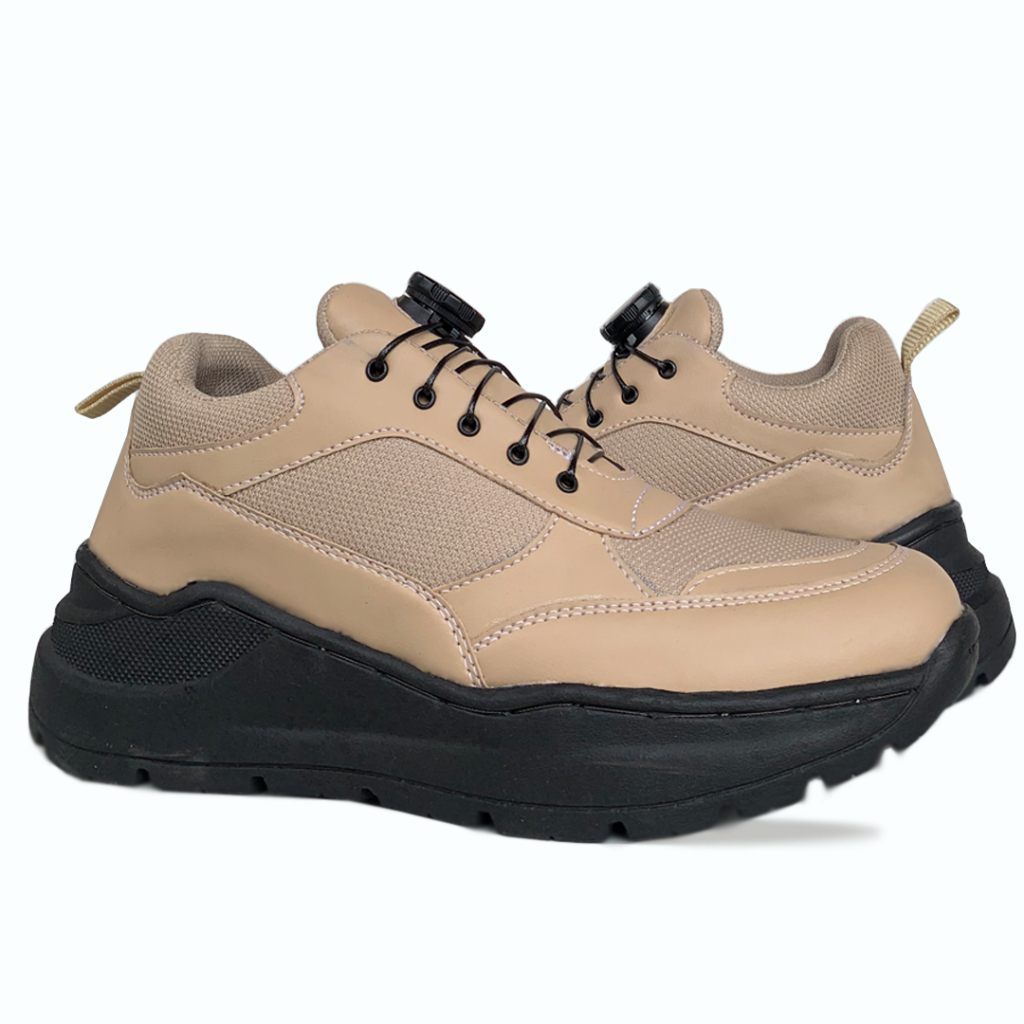 Sepatu Sneakers Aksara Pria Kasual Casual Kerja Formal Full Black Hitam Coklat Cream Boots Shoes Naik Gunung Hiking Tou