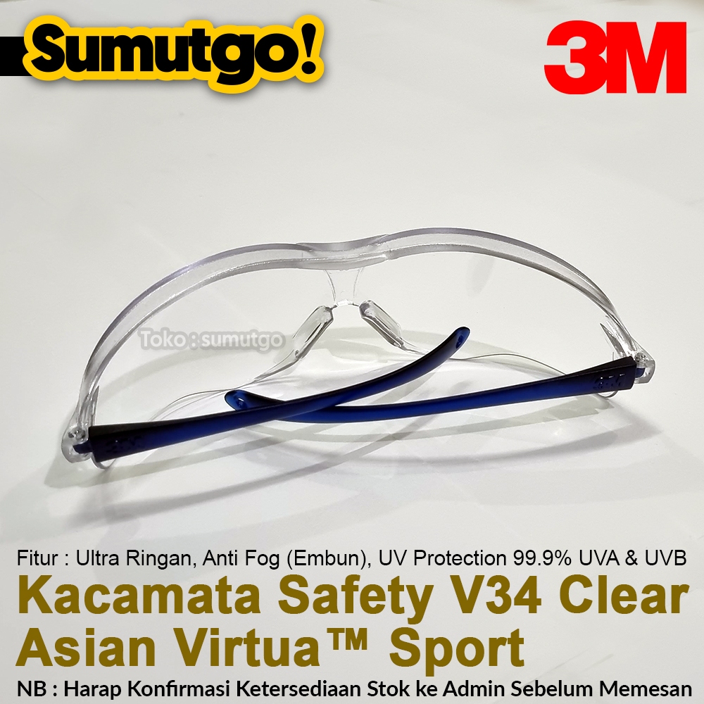 Kacamata Safety 3M Asian Virtua Sport V34 Clear Putih / Kaca Mata APD Proyek Anti Fog Bening Keren Viral Murah Ringan /