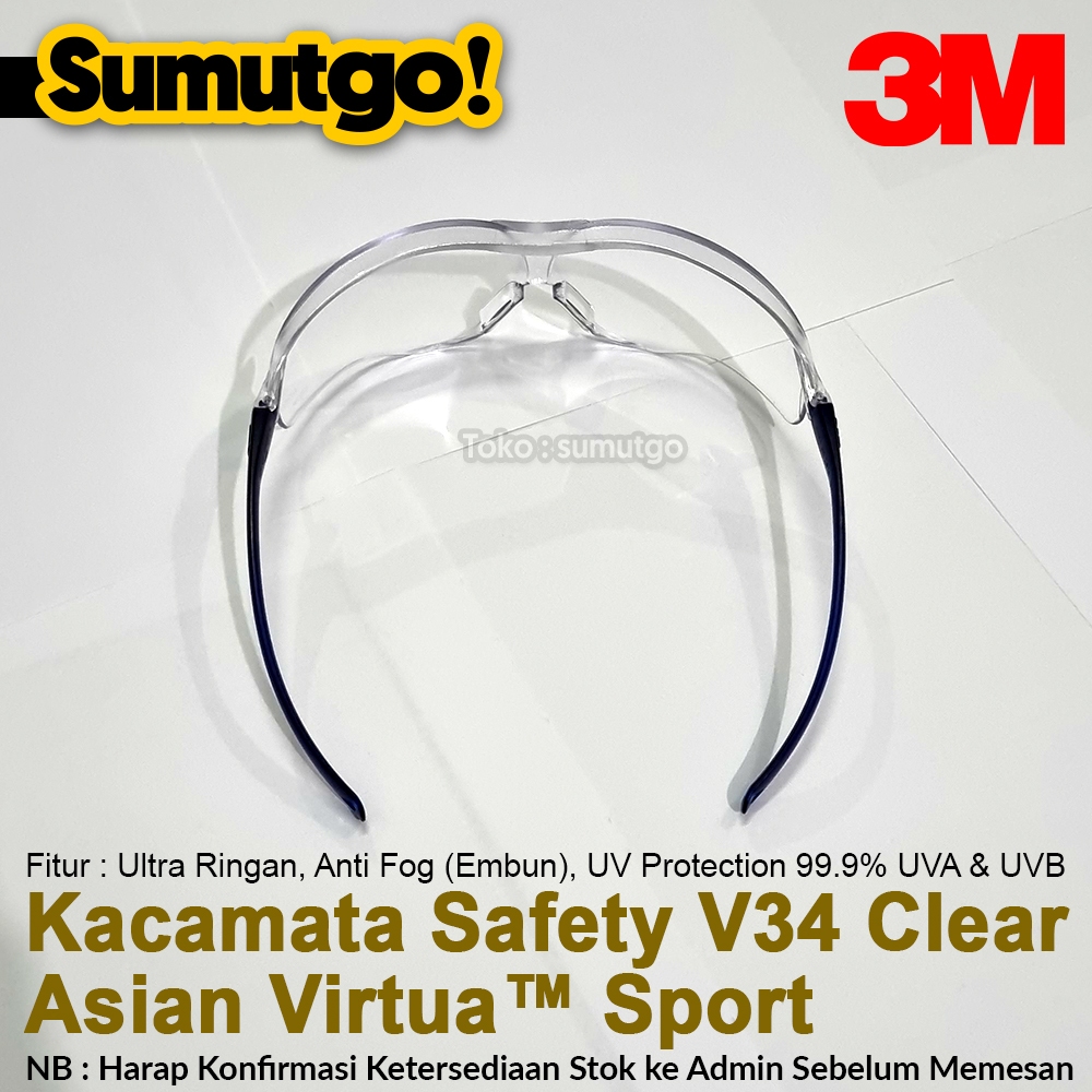 Kacamata Safety 3M Asian Virtua Sport V34 Clear Putih / Kaca Mata APD Proyek Anti Fog Bening Keren Viral Murah Ringan /