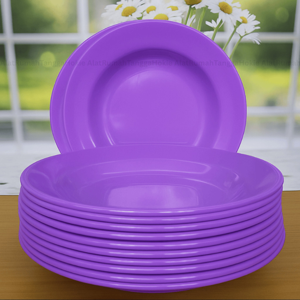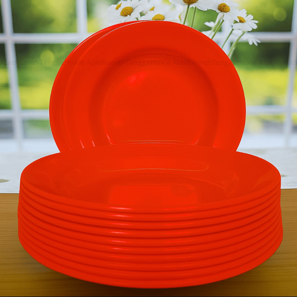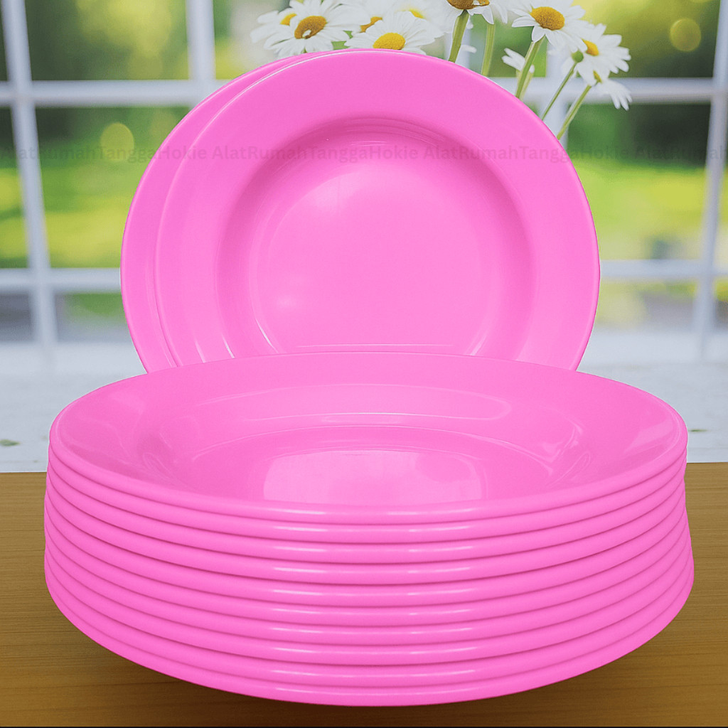 12pcs Piring Makan GRATIS BUBBLE Bulat Tebal Putih Semi Melamine / Piring Makan