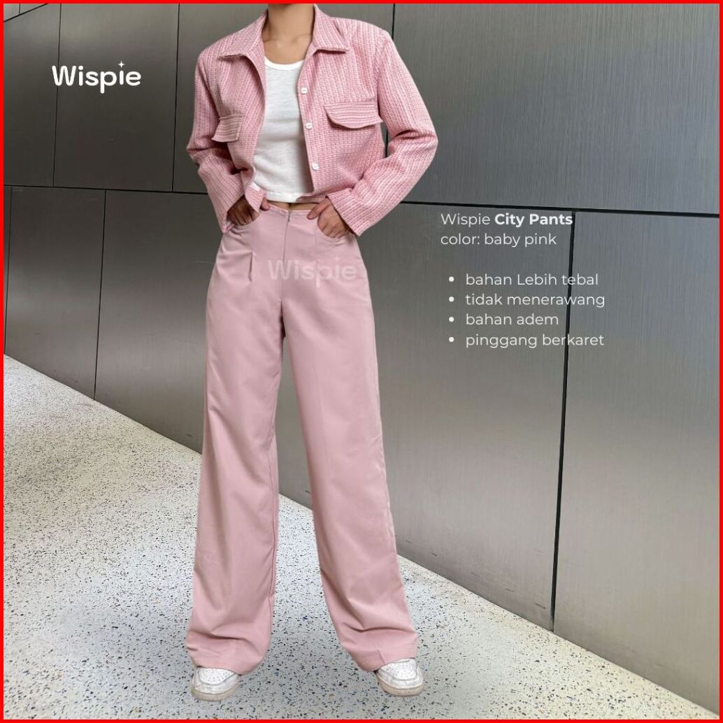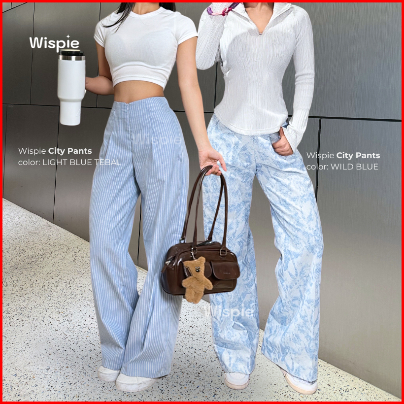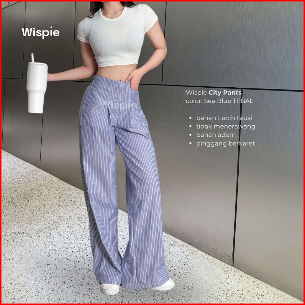 Wispie City Pants Celana Tidur Panjang Wanita Kantor Kuliah Motif Garis Kulot Pinstripe