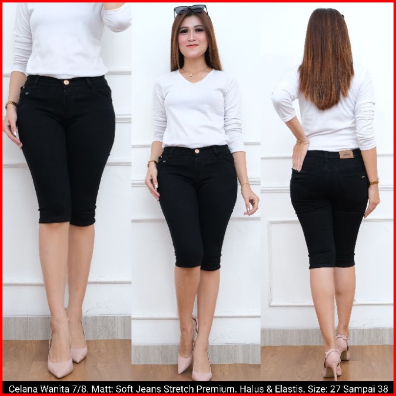 Celana 7 8 Jeans Stretch Hitam . Celana Pendek Jeans Wanita Murah