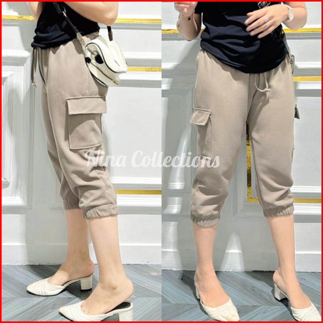 Polos Celana 3 4 Cargo Knit Jumbo Wanita Celana Polos Cewek Big Size Celana Kain Celana Knit Celana Santai Celana Harian