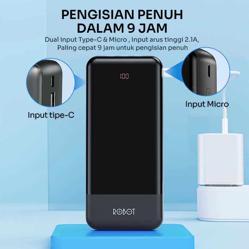 Powerbank ROBOT 20000mAH RP-201L 2.1A Dengan 3 Kabel Type C Lightning Micro Powerbank Ringan Portable Series Premium
