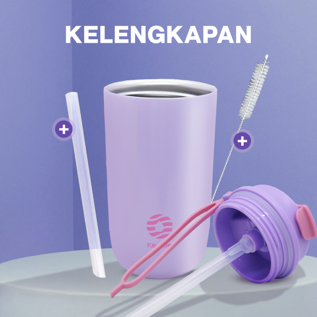 FJBottle - SR2043 Botol Minum Tumbler 450ML Double Insulated Tutup 2in1 SUS 304 dengan Silicon Strap