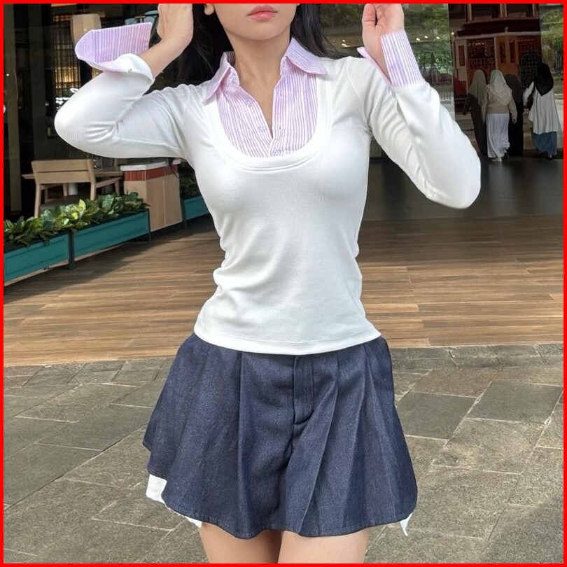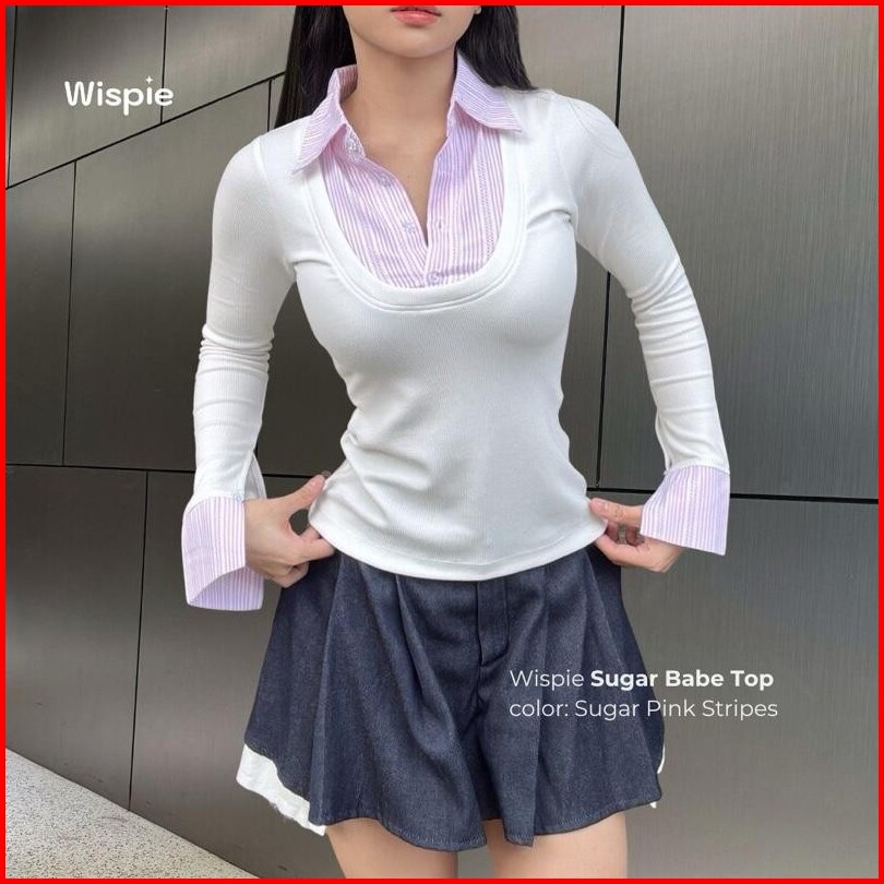 Wispie Sugar Babe Top Atasan Wanita Slim Fit Kemeja Knit Press Body Rib