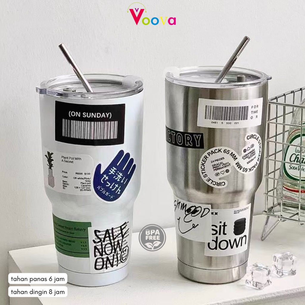 VOOVA 900ml Botol Minum Stainless Steel/900ml Sedotan Cangkir/Boto Minum Kopi Sedotan/Stainless Steel Tumblr Coffee
