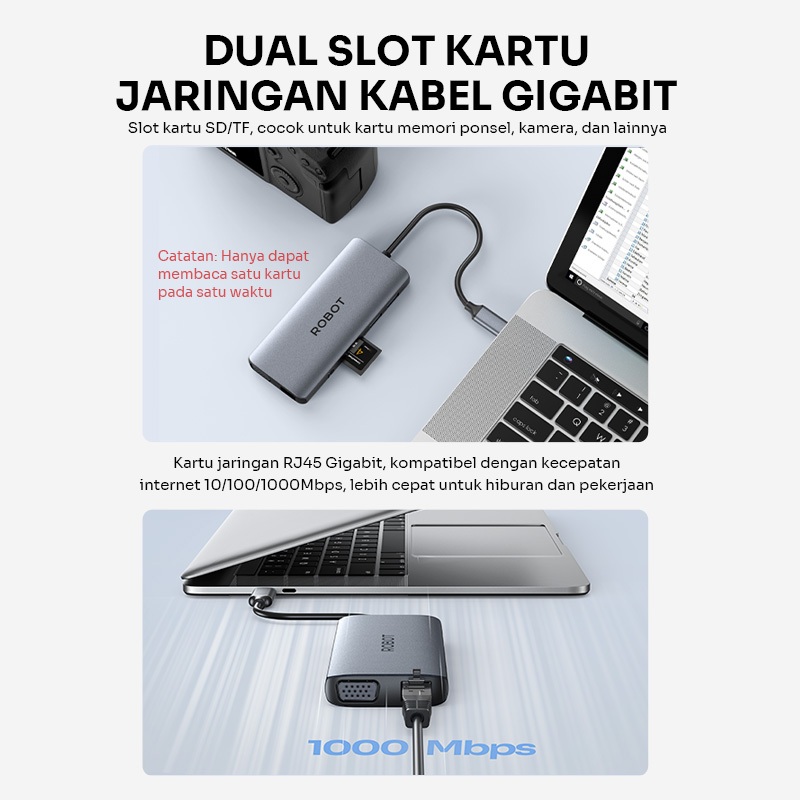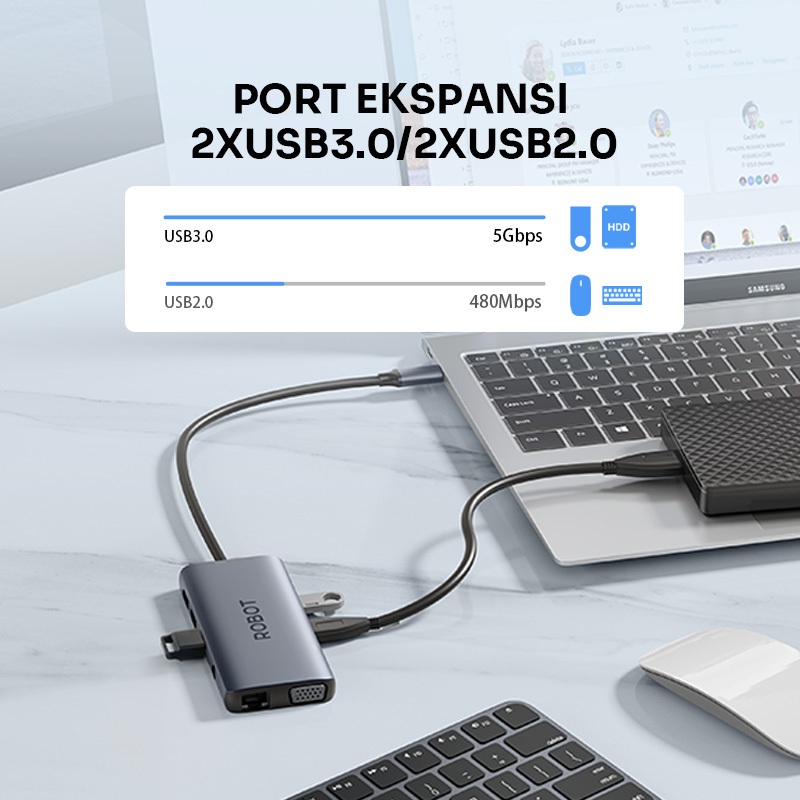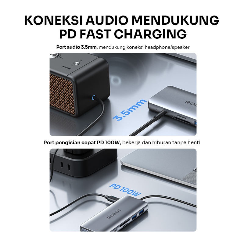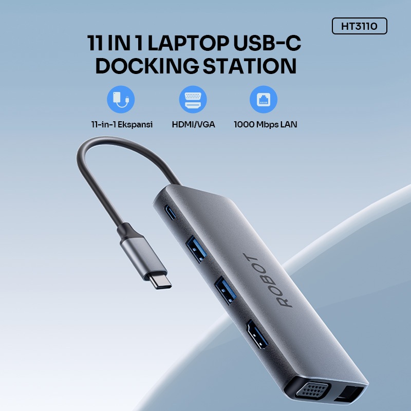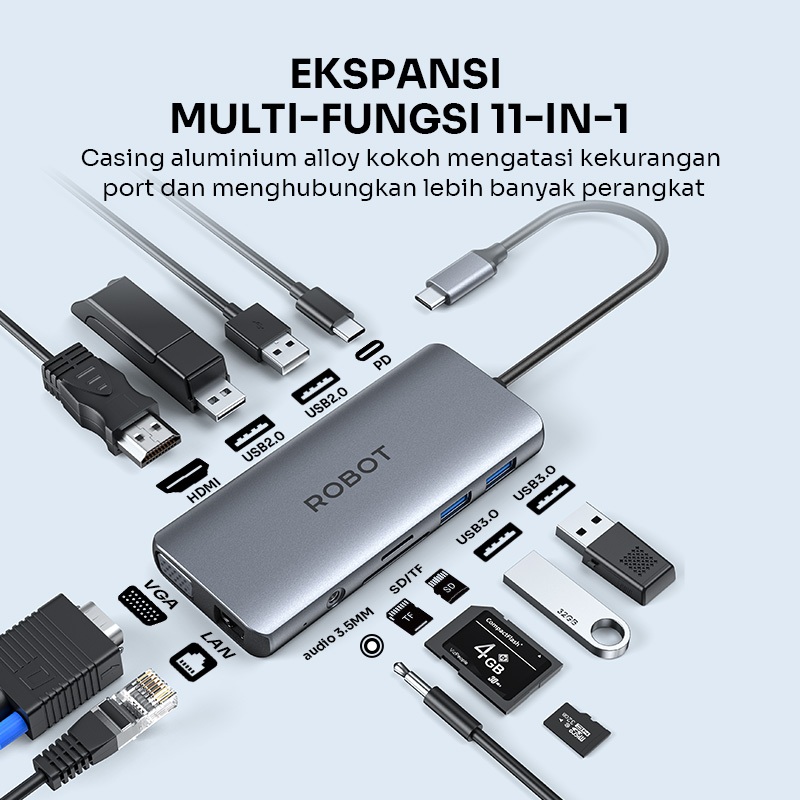 ROBOT USB HUB Converter TYPE-C 11 Port in1 With HDMI VGA HUB Converter Laptop MacBook HT3110 Original - Garansi 1 Tahun