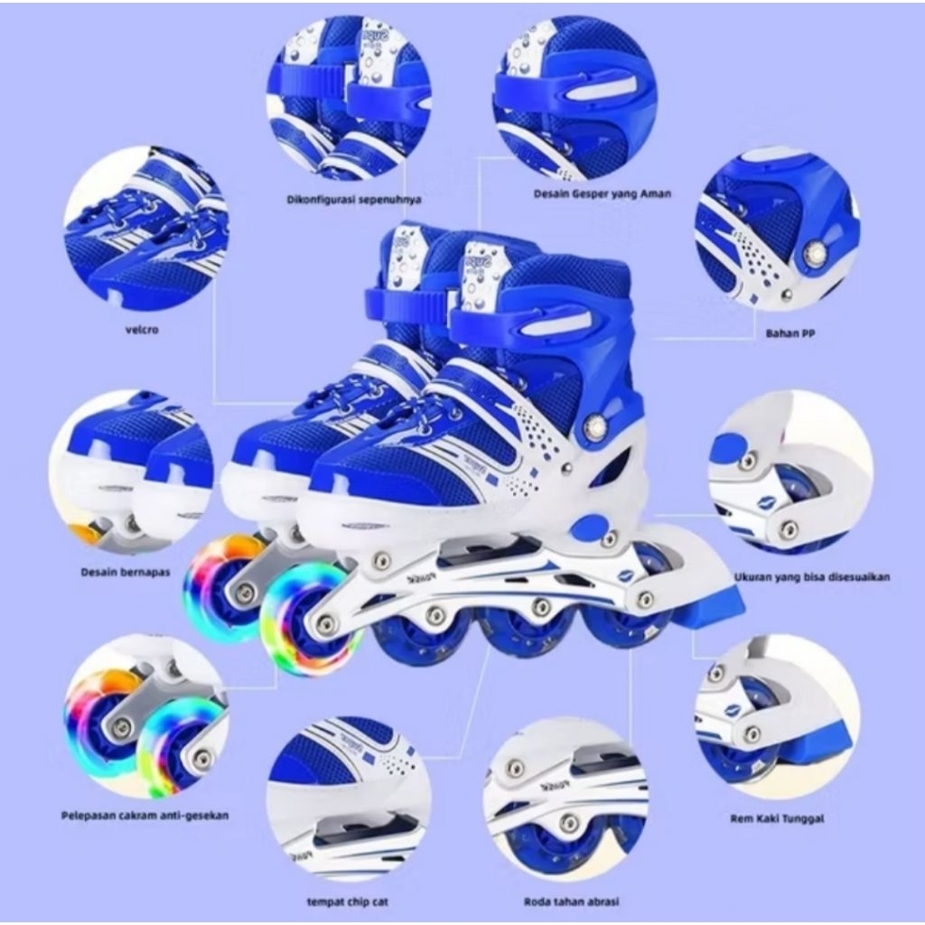 Sepatu roda anak laki laki perempuan pemula full set model inline dan 4 roda