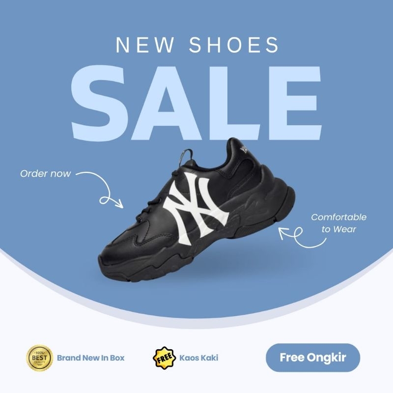 Sepatu MLB BigBall Chunky NY Yankees Black Unisex / Free Kaos Kaki