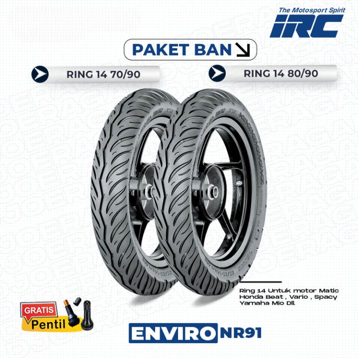 Sepasang Satuan Ban Motor Irc Nr91 Enviro Ring 14 Tubeless Matic Beat Vario 80/90-14 90/90-14 Ori New Produksi 2025 Mura
