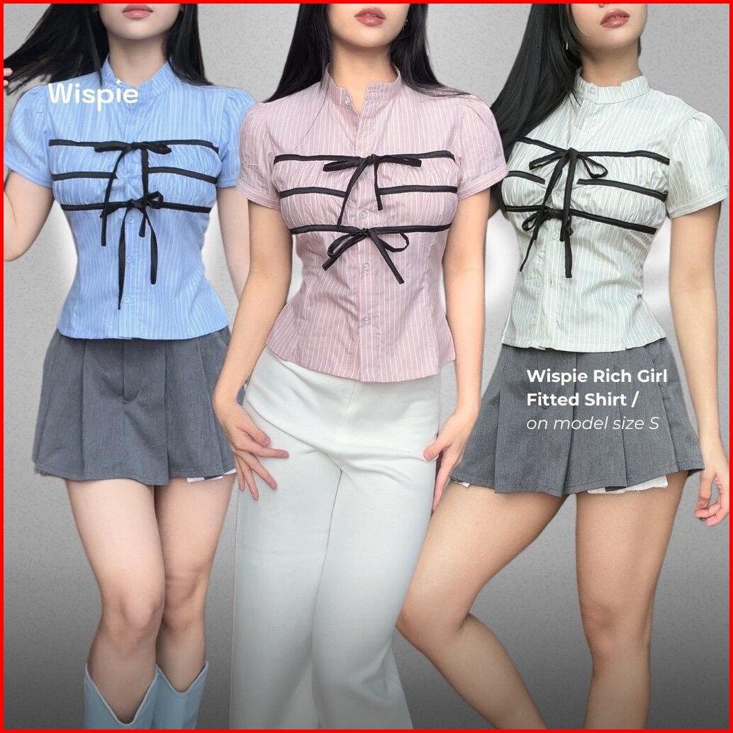 Wispie Rich Girl Fitted Shirt Kemeja Wanita Slim Fit Body Lengan Pendek Kerja Kuliah Kantor Cute