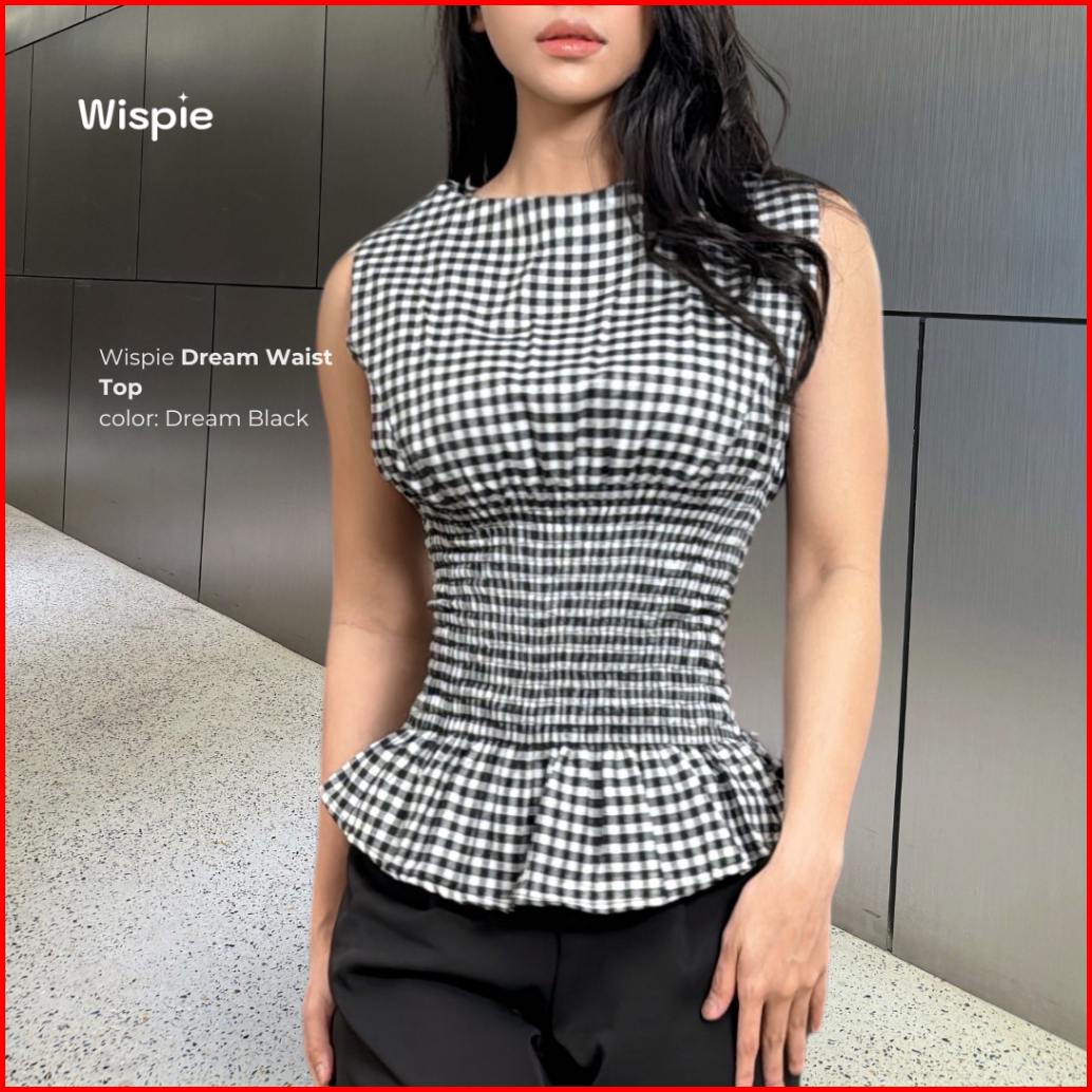 Wispie Dream Waist Top Atasan Wanita Motif Kotak Kotak Blouse Fit Body