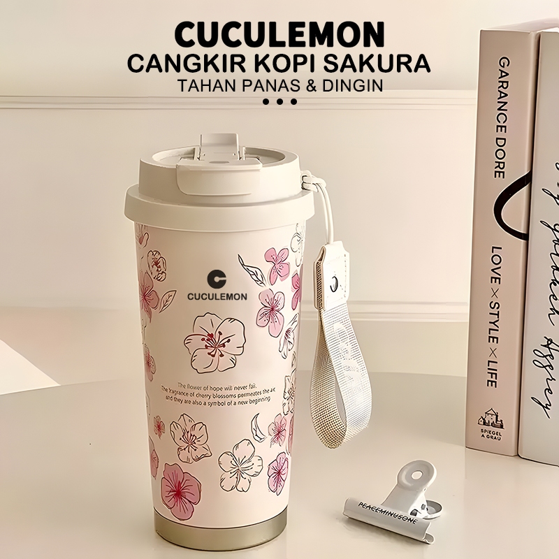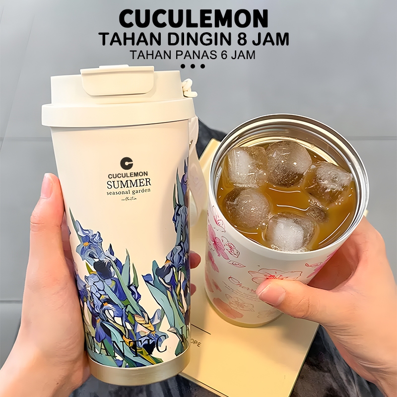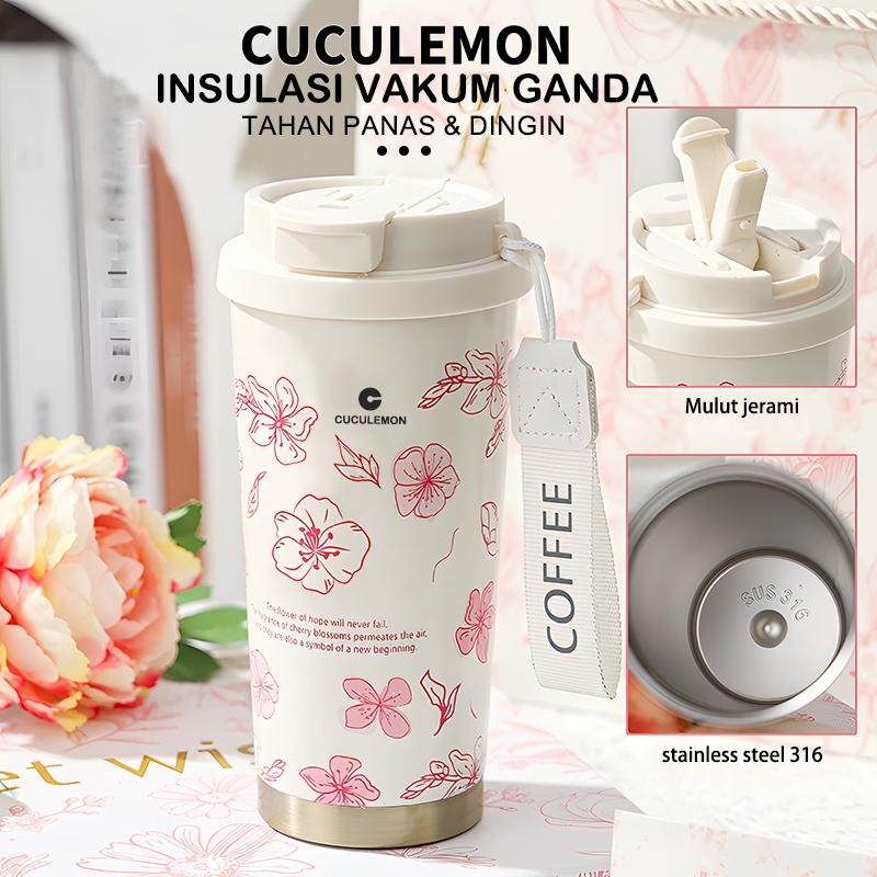 CucuLemon Tumbler tahan panas dingin 24 jam Termos Stainless Steel Vacuum Kopi Botol Minum 530ml