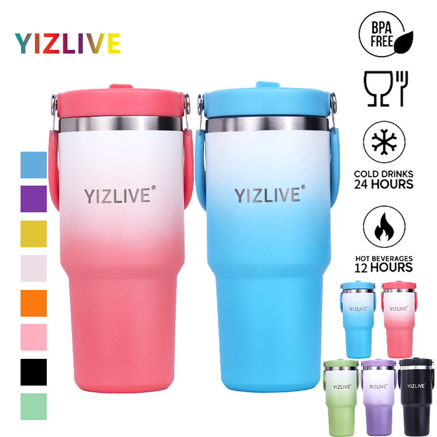 Yizlive tumbler 600/750/900ml Portable botol minum 304 stainless dengan sedotan