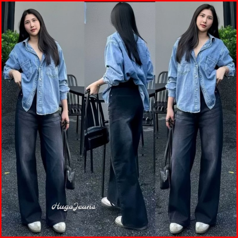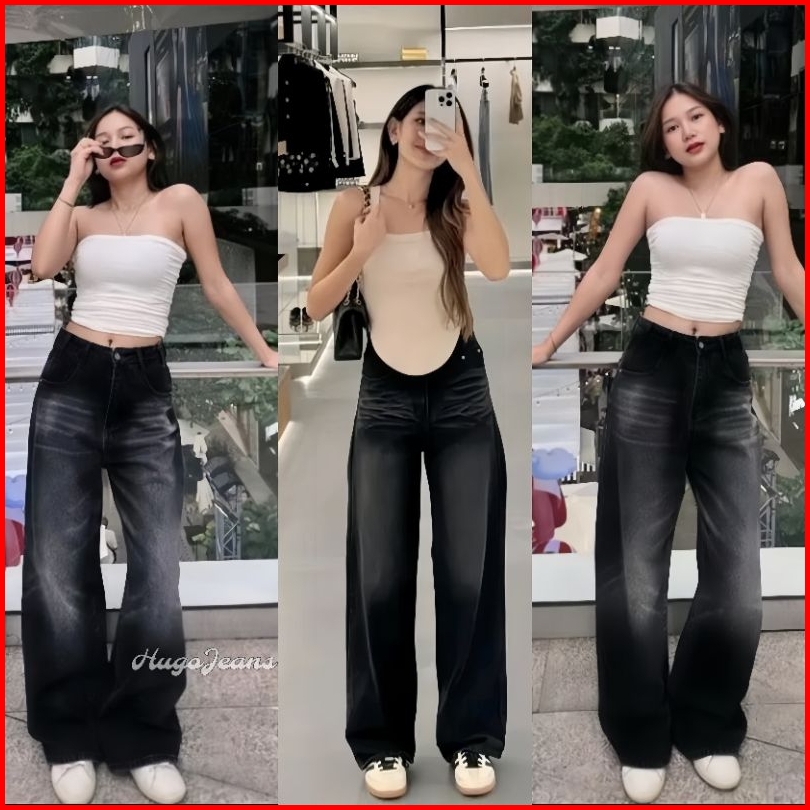 Unisex Celana Jeans Whisker Gombrong Highwaist Baggy Pants Hangover Wid Leg Oversize Korean Style Terlaris