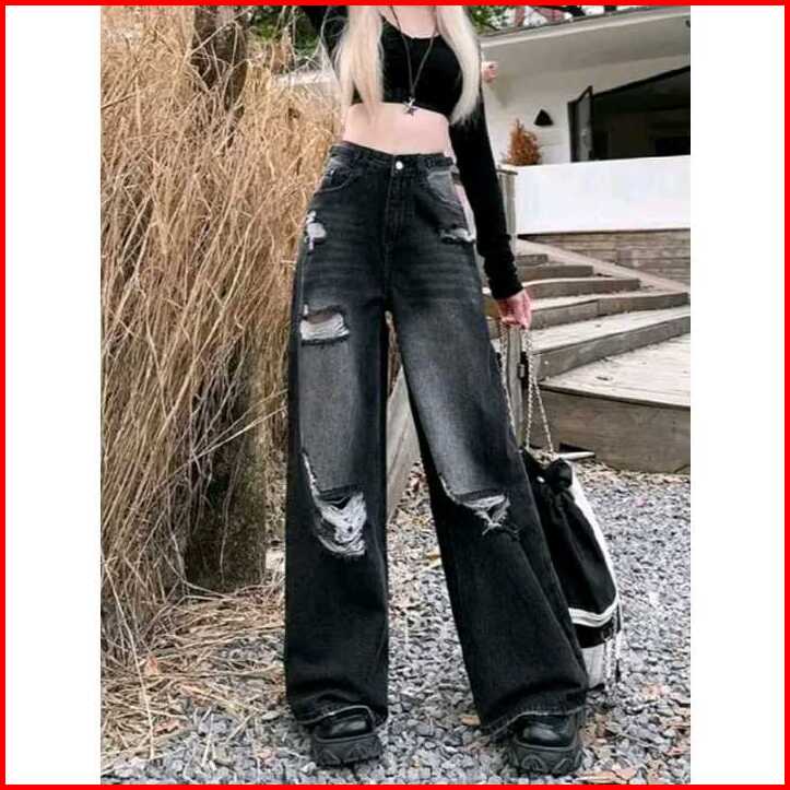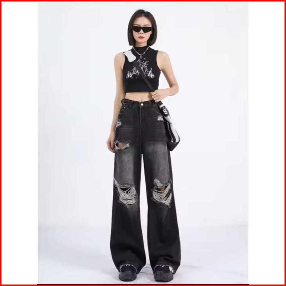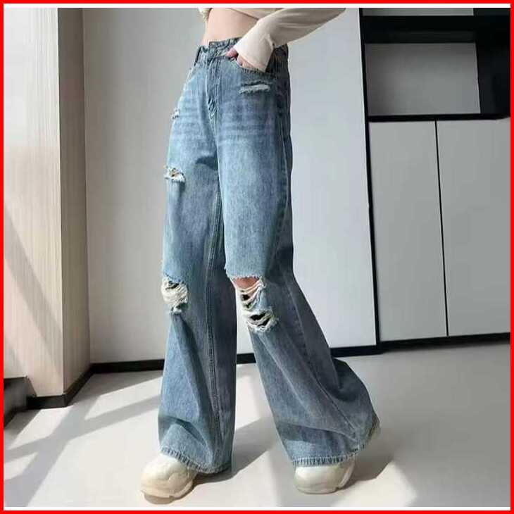 Celana Jeans Panjang Baggy Pants Korean Style Celana Sobek Denim Celana Loose Pants Casual