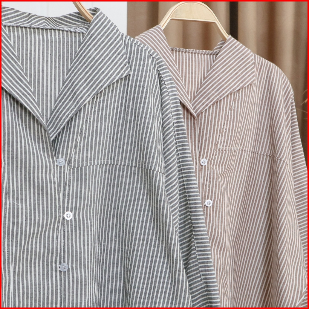 Kara.id Raine Shirt Stripe Kemeja Wanita Salur Oversized - Atasan Wanita V Neck - Stripe Shirt