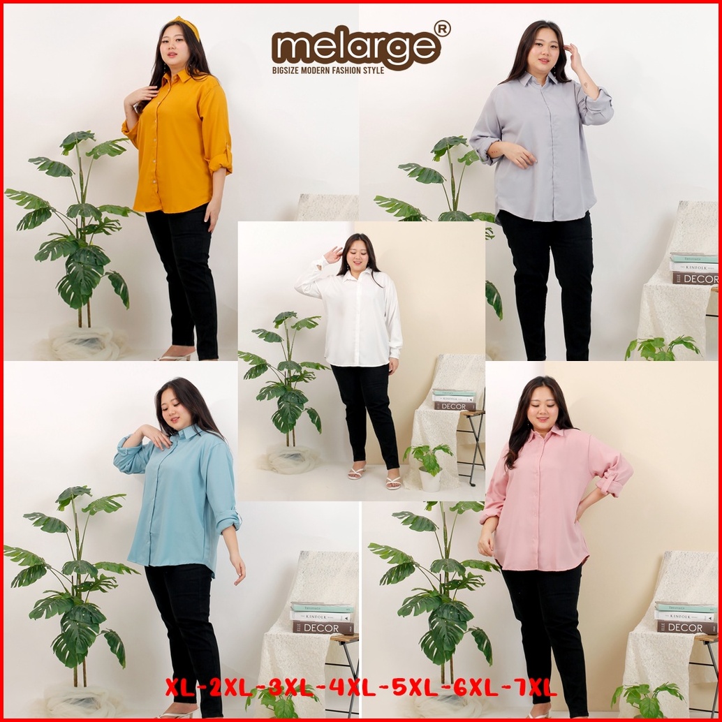 Melarge - Kemeja Polos Jumbo Xl Ld 100 2xl Xxl 2l Ld 110 3xl 3l Xxxl Ld 120 4xl 4l Xxxxl Ld 130 Atasan Big Size Kemeja W
