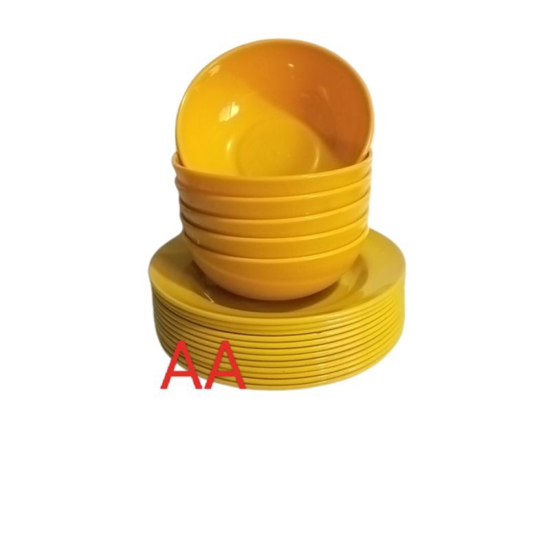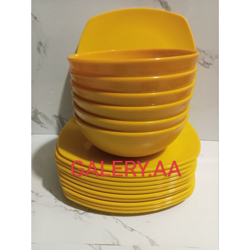 PEROMO PAKET HEMAT 6PCS KUNING (3PCS PIRING BULAT 3PCS MANGKUK BULAT )( 6.PCS KUNING (3.PCS PIRING KOTAK+ 3.PCS MANGKUK