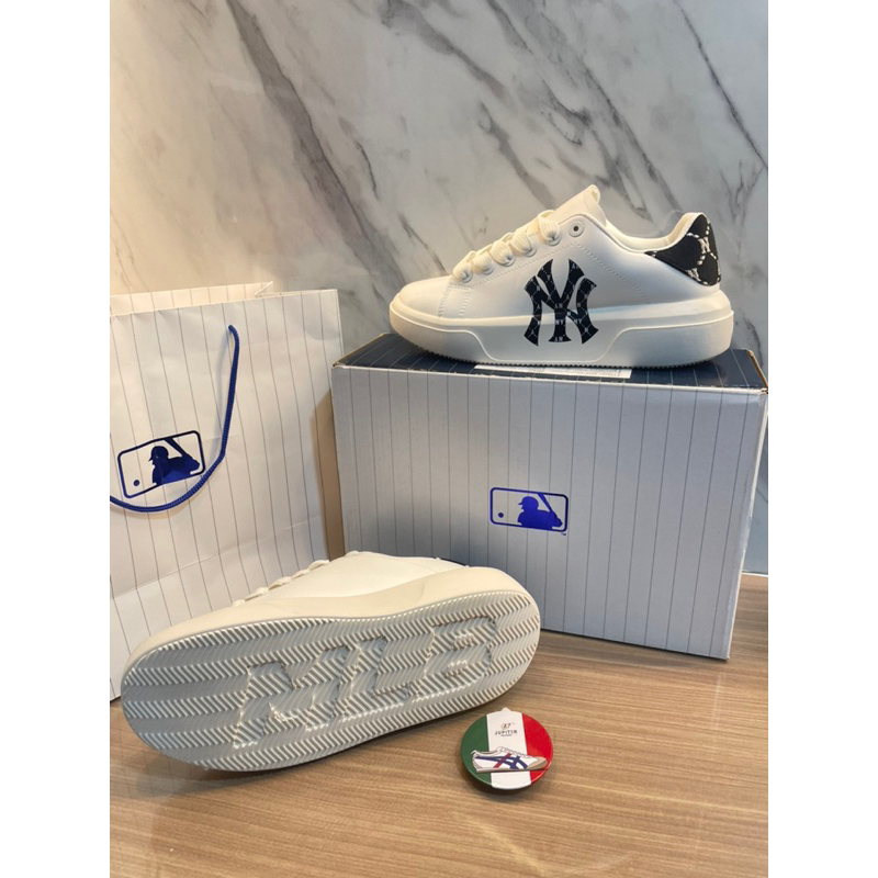 Sepatu MLB NY Yankess Chunky Classis Heel Dia Monogram White Black /Free Paperbag dan Kaos Kaki